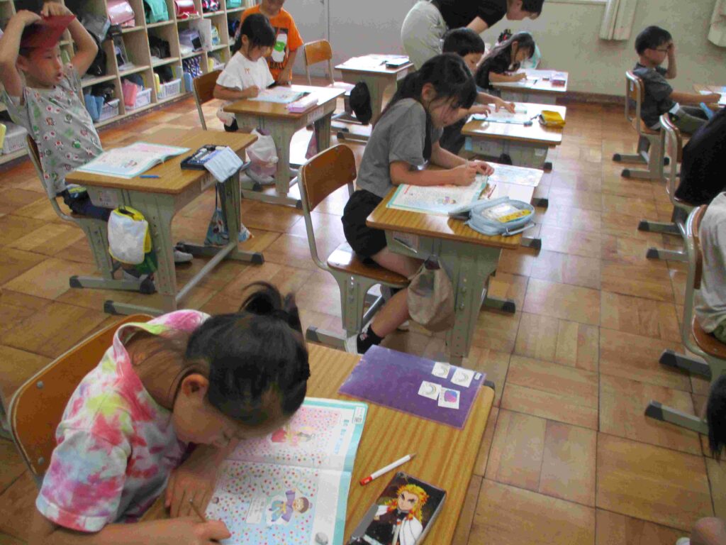 午前の授業の様子です。場面を想像する、物語りを創る、表現する等に取り組む学年が多かったです。