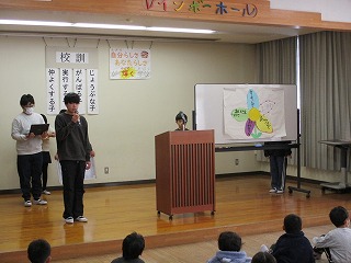 5年生を中心に計画や準備を進め、各学年はそれぞれで出し物を考え、練習してきました。6年生に対する感謝の気持ちがこもったすてきな発表ばかりで、6年生はとてもうれしそうに見ていました。