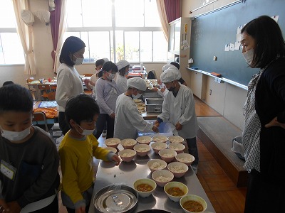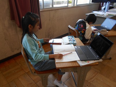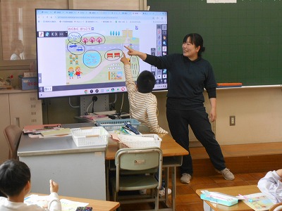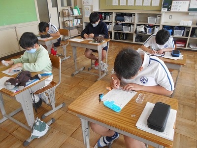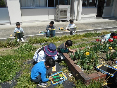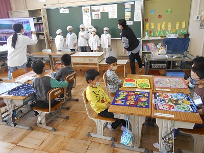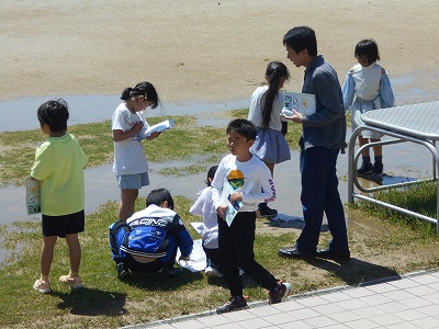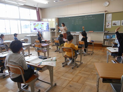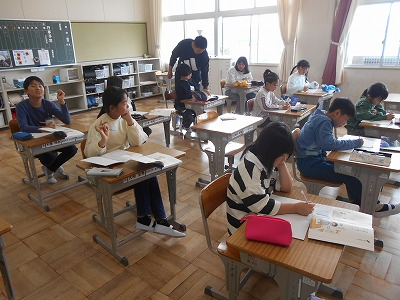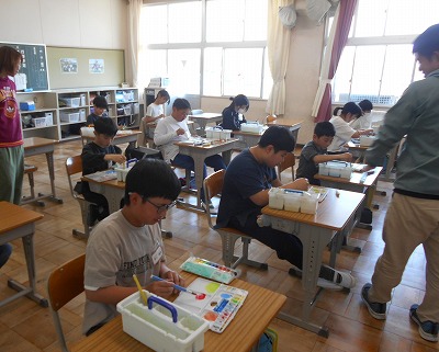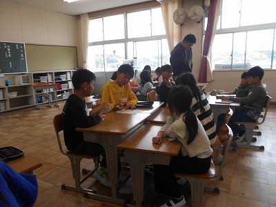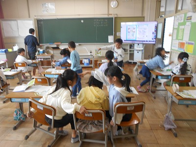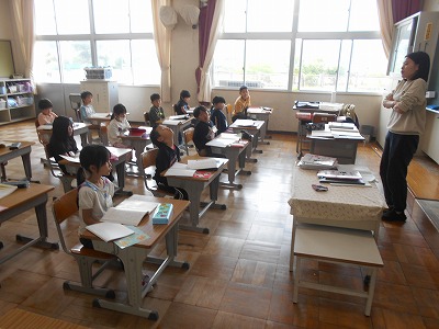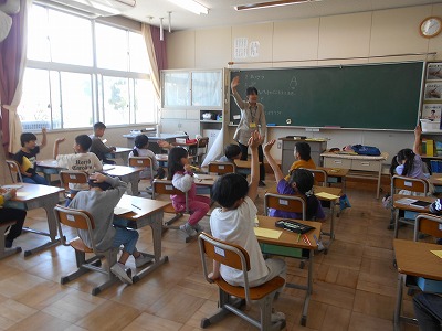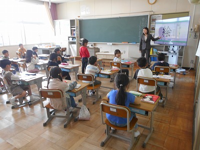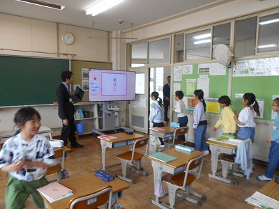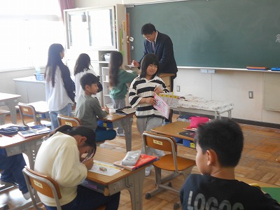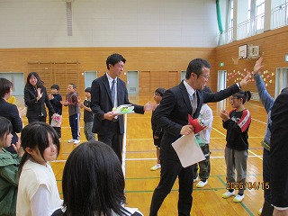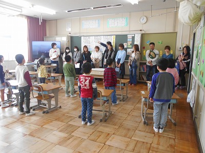 3月まで上野間小学校で一緒に生活していた先生方に、これまでの感謝の気持ちを伝え、お別れをしました。