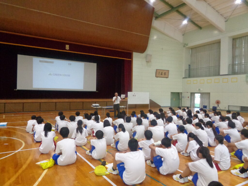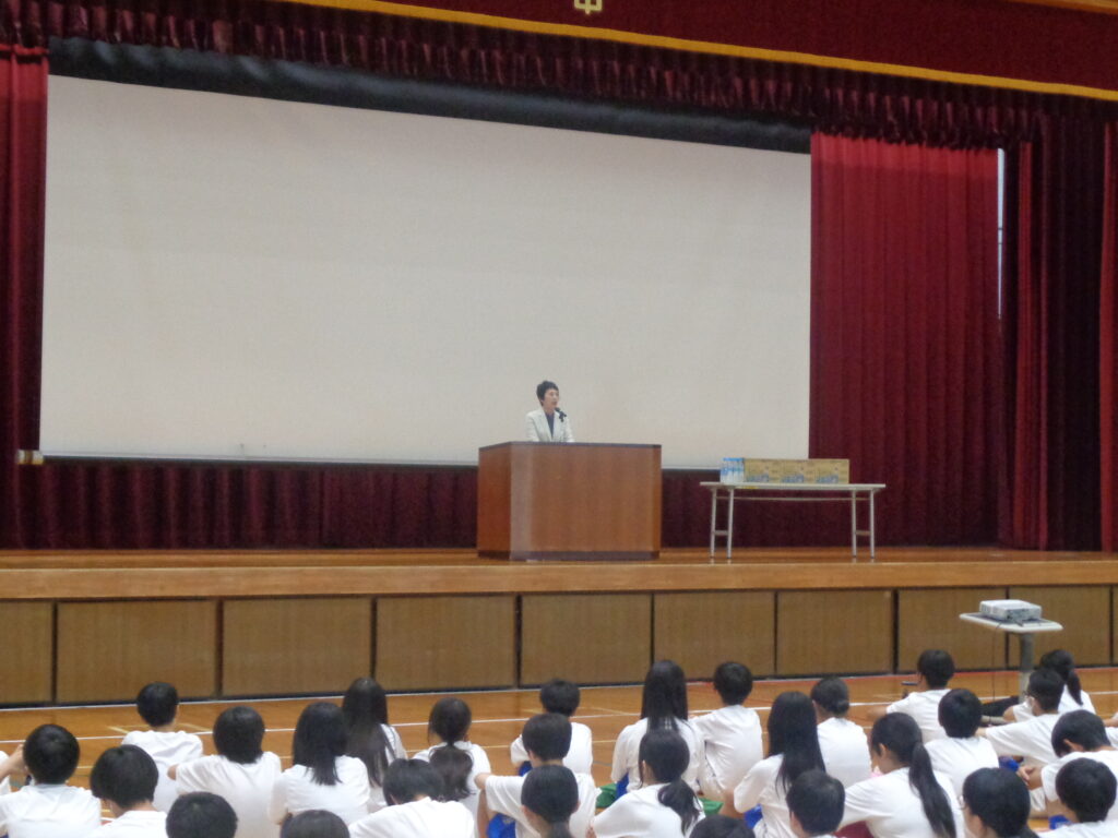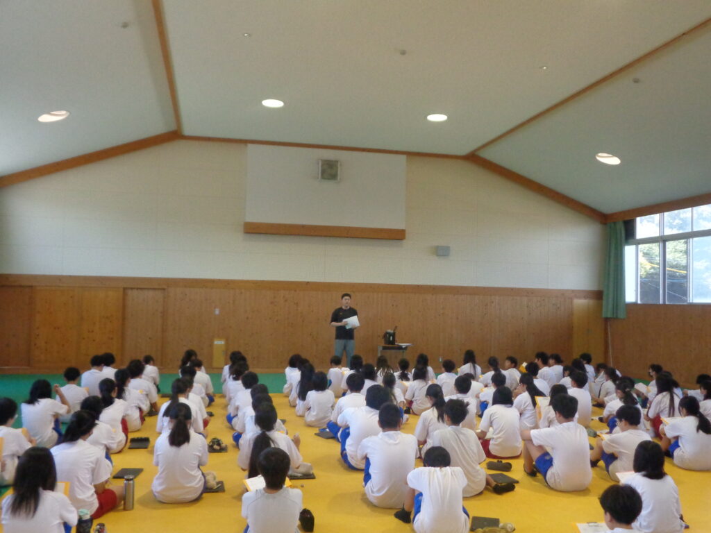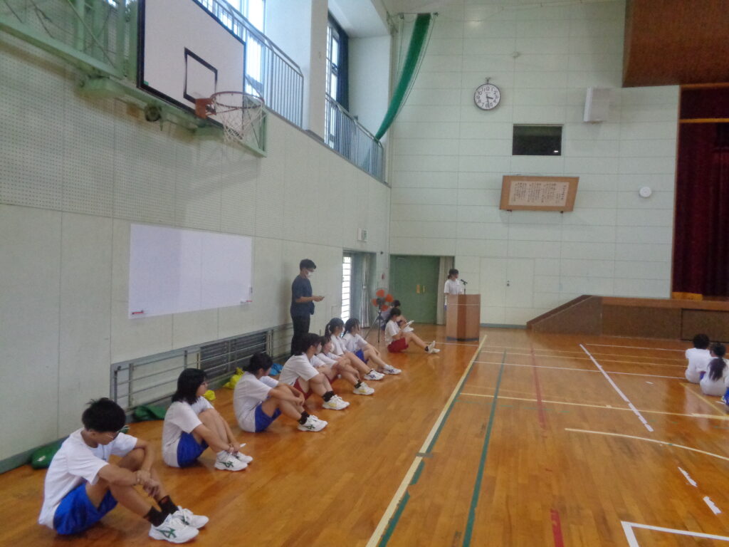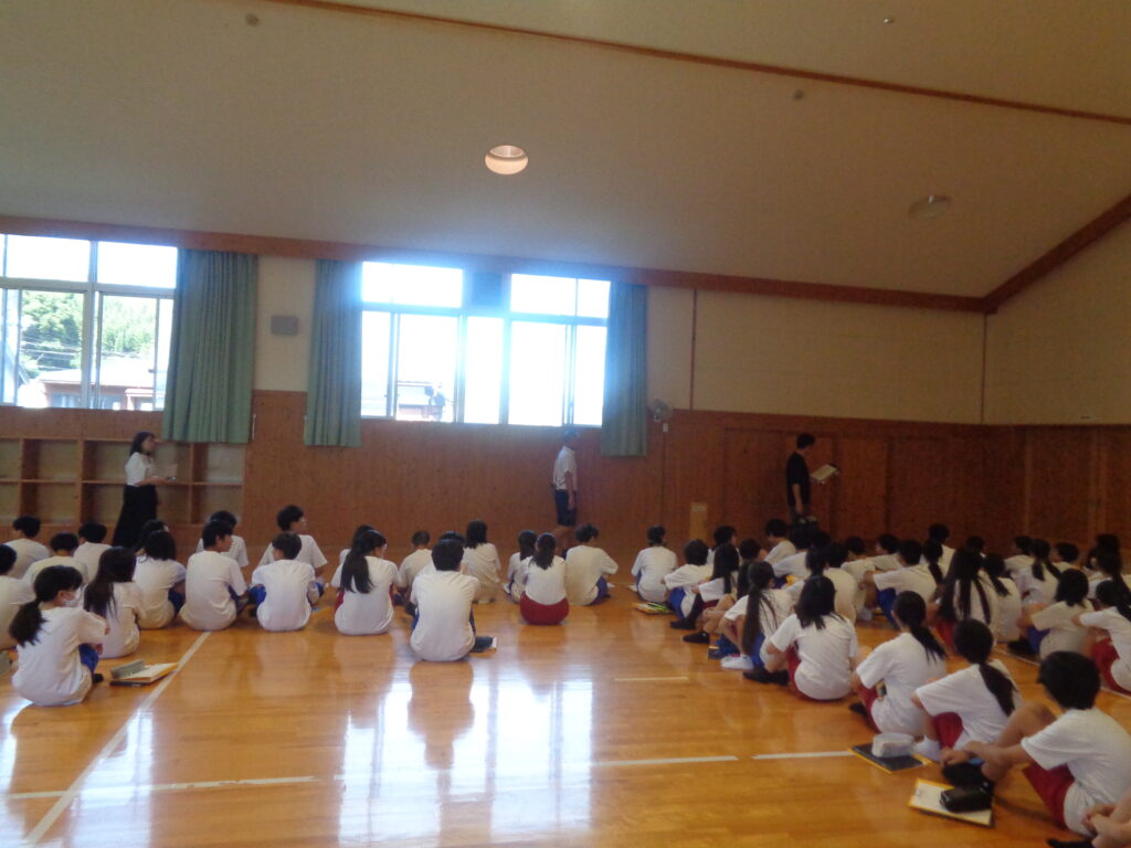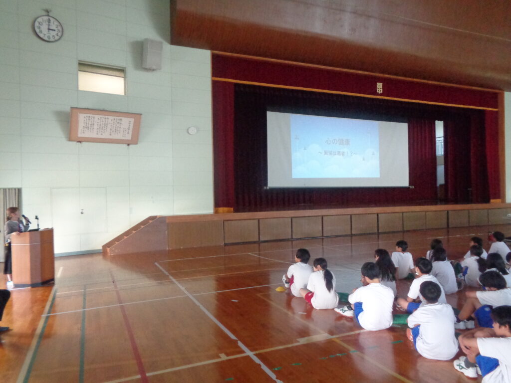 最後に、養護教諭から「心の健康」についてのお話がありました。緊張をほぐす方法を実際に体験しながら学ぶことができました。今後の生活に生かしていきましょう。