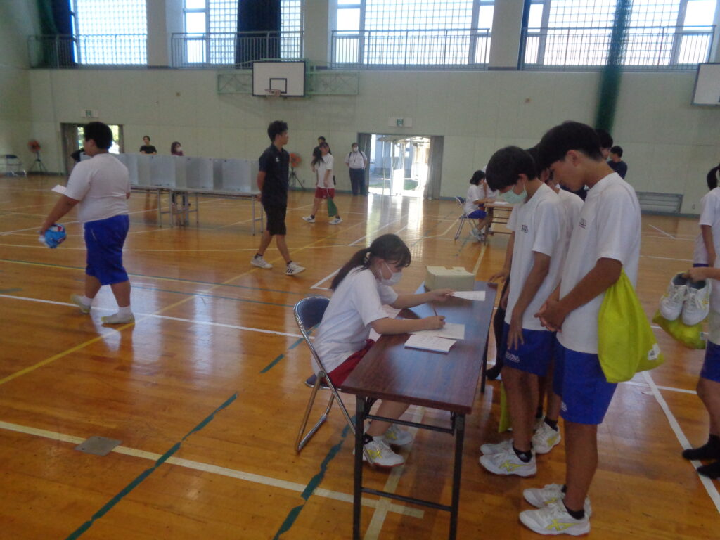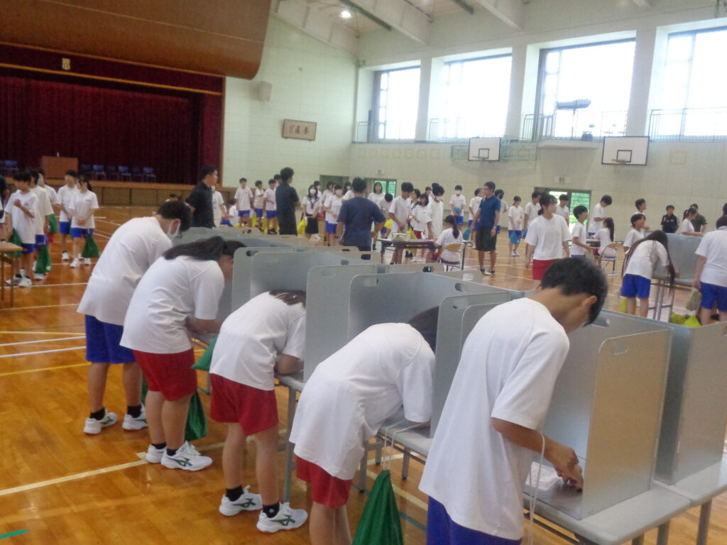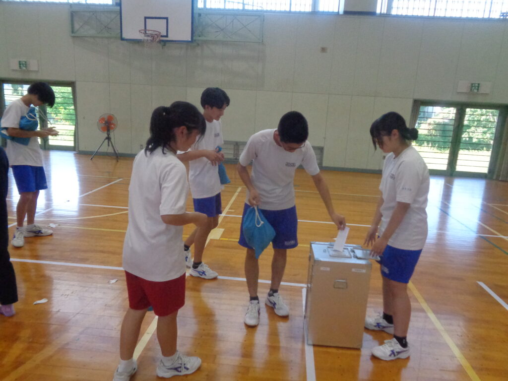 後期生徒会役員の所信表明演説と立会演説会・選挙がありました。河和中学校をよりよい学校にしたいという思いをもった生徒たちが立候補し、堂々と発表しました。勇気をもって立候補してくれた生徒の皆さん、ありがとうございます。会場の生徒たちも真剣な眼差しで耳を傾けていました。選挙管理委員の生徒たちも選挙の準備・運営等を行い、支えてくれました。河和中学校全員で、よりよい学校にしていきましょう。