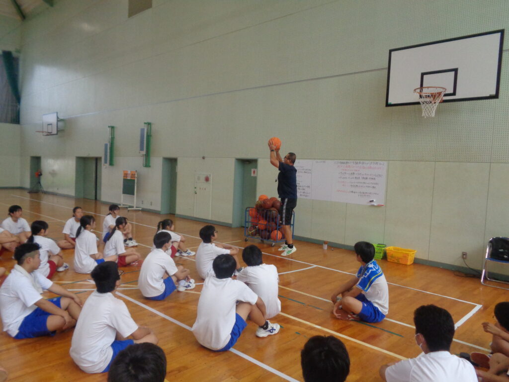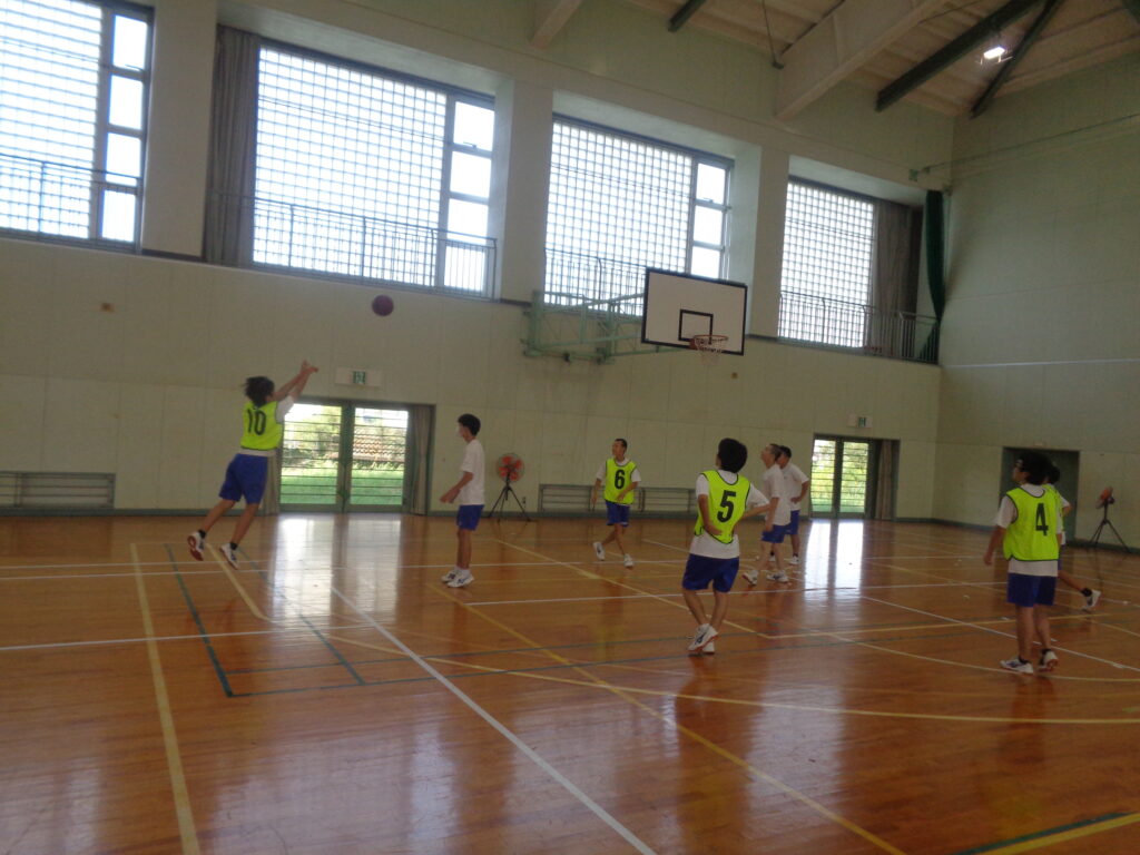 体育の授業で「バスケットボール」に取り組みました。シュート練習後に運動量と心拍数を意識しながらゲームを行いました。適切な有酸素運動は、脳の働きが活性化し、ストレスの発散や基礎体力の向上にもつながります。生徒たちは、仲間と協力しながら一生懸命プレーする中で、スポーツの楽しさを味わうことができました。