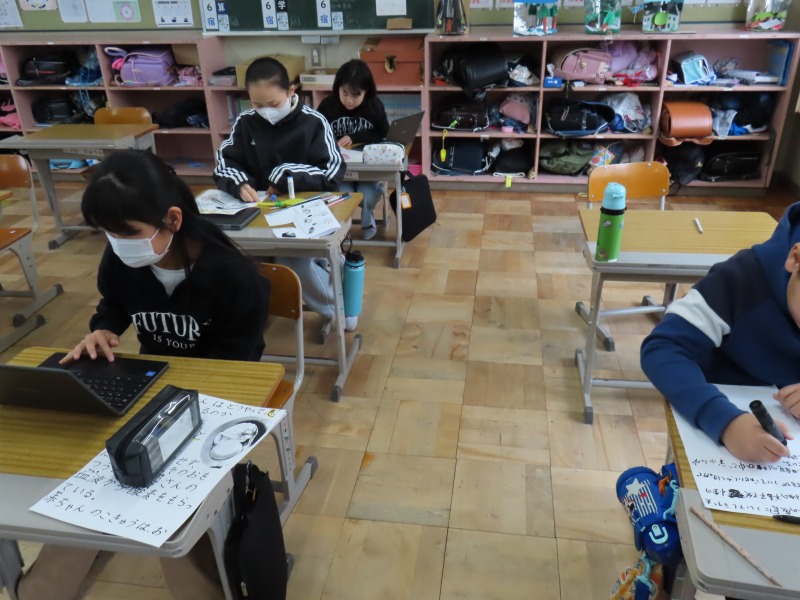 6年生は書写で「旅立ちの時」という文字を書いています。まさに、今旅立つときが近づいています。