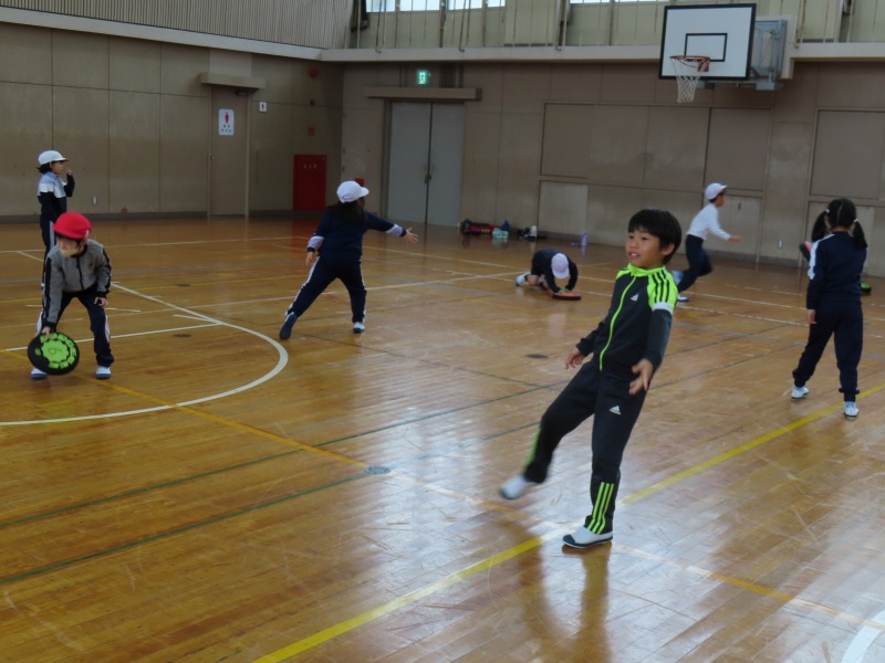 3・4年生の体育の様子です。今日はサッカーをしていました。