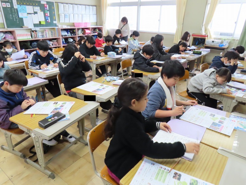 4年生の書写の様子です。「平和」の練習です。みんな真剣に練習しています。