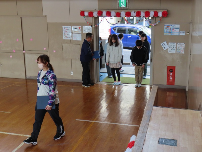 昇降口には「ありがとう」の文字が・・・6年生への感謝の気持ちがあらわれています。