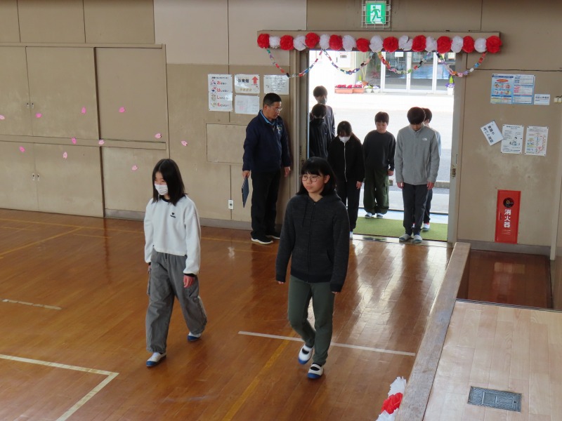 本日の授業の様子です。6年生はいよいよ卒業式の動きの練習に入りました。