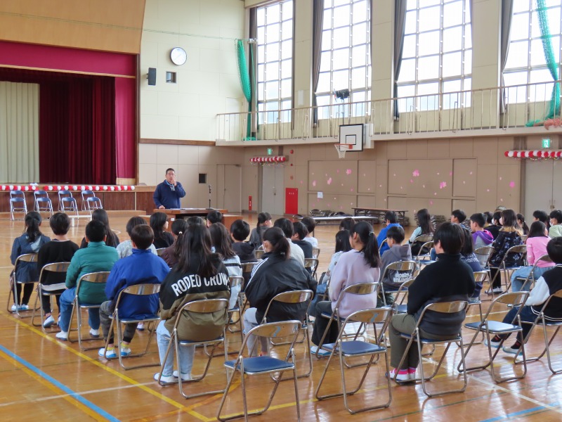 6年生にとって小学校最後の朝会の日でした。校長先生から、「残りの9日間、一日一日を大切に過ごしてください」という話がありました。