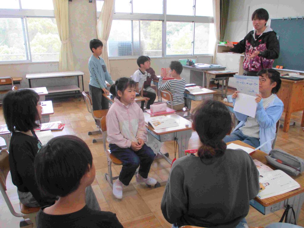 同じく、外国語の学習では4年生で学習した内容の復習をしました。見て、聞いて、話して…、ウォーミングアップはバッチリです。