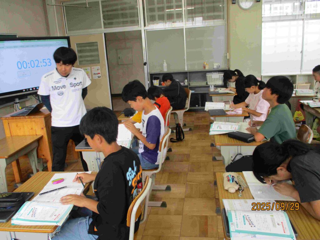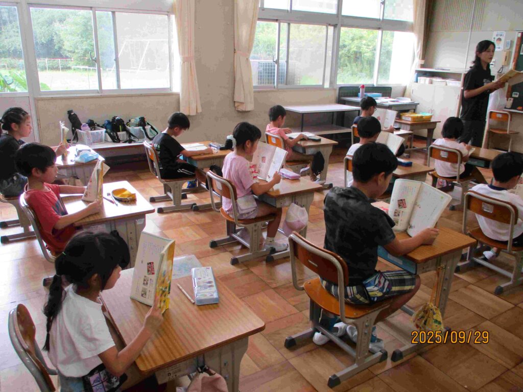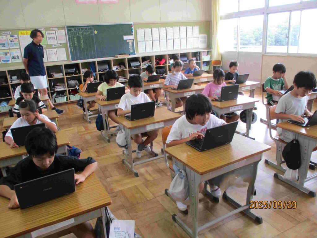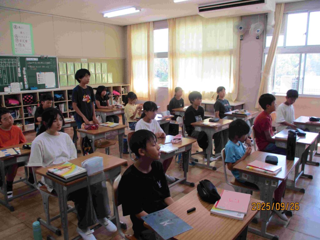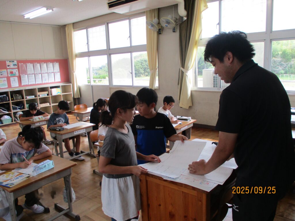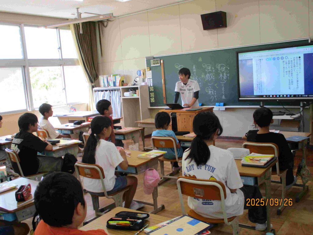 6年生算数では「データの整理と活用」を学習しました。データのちらばりを点で表した図をもとにして問題を解いていました。また、今日から教育実習が始まり、実習生が授業づくりや教育活動について学んでいます。6年生の配属です。教育を志す学生、教師、子どもたちの関わりから相乗効果が生まれることを期待します。