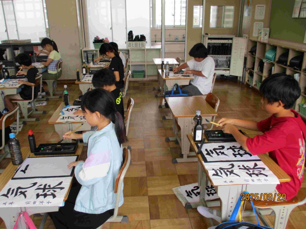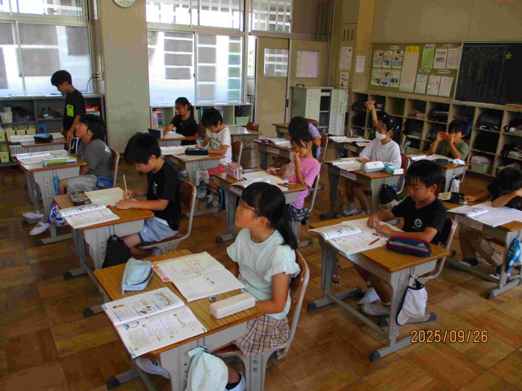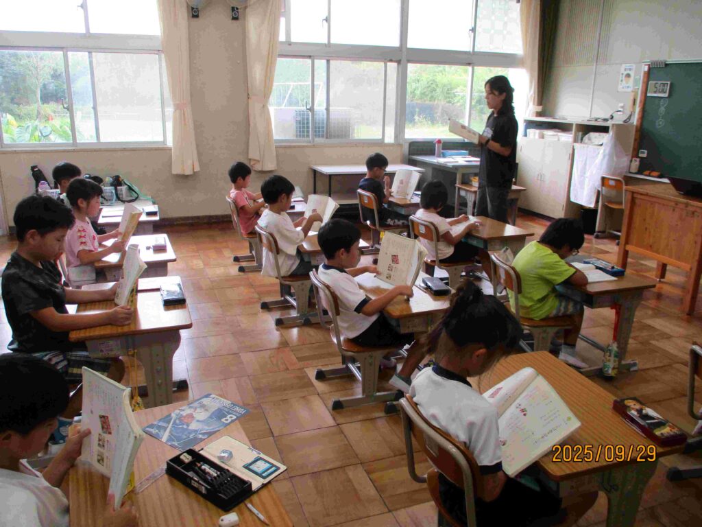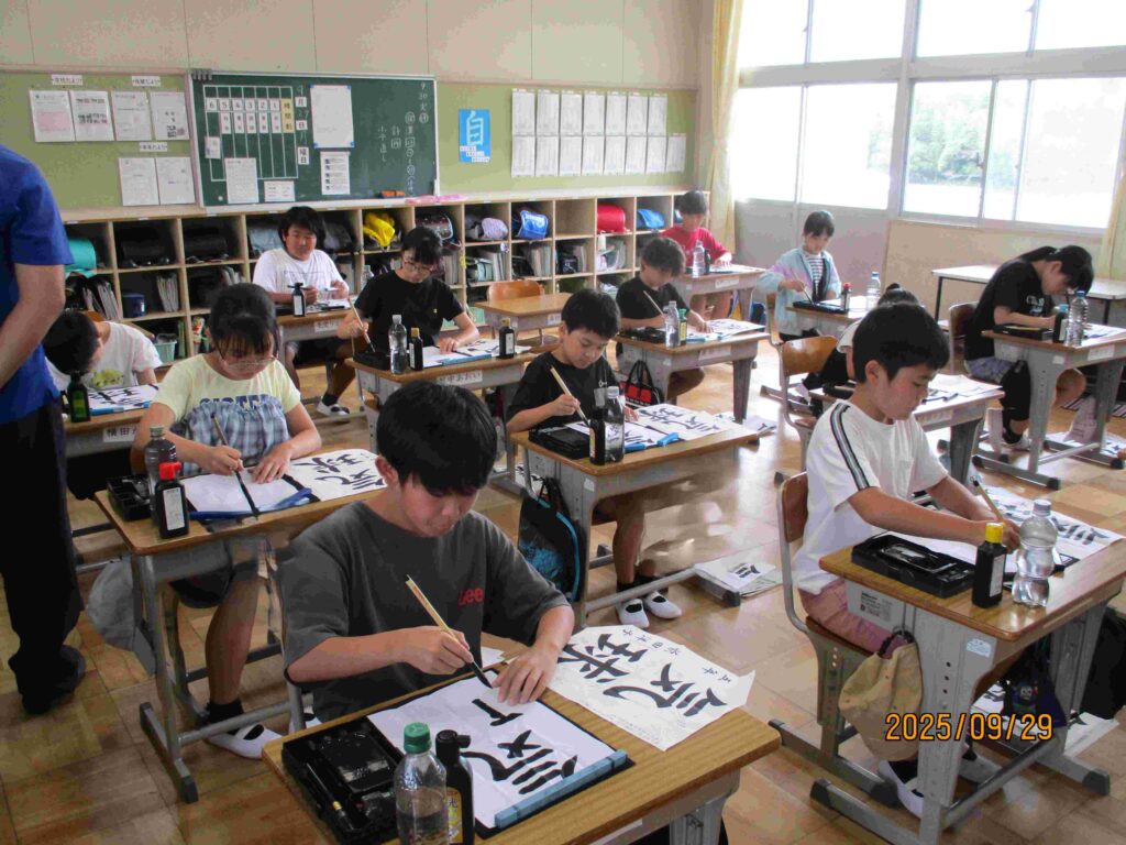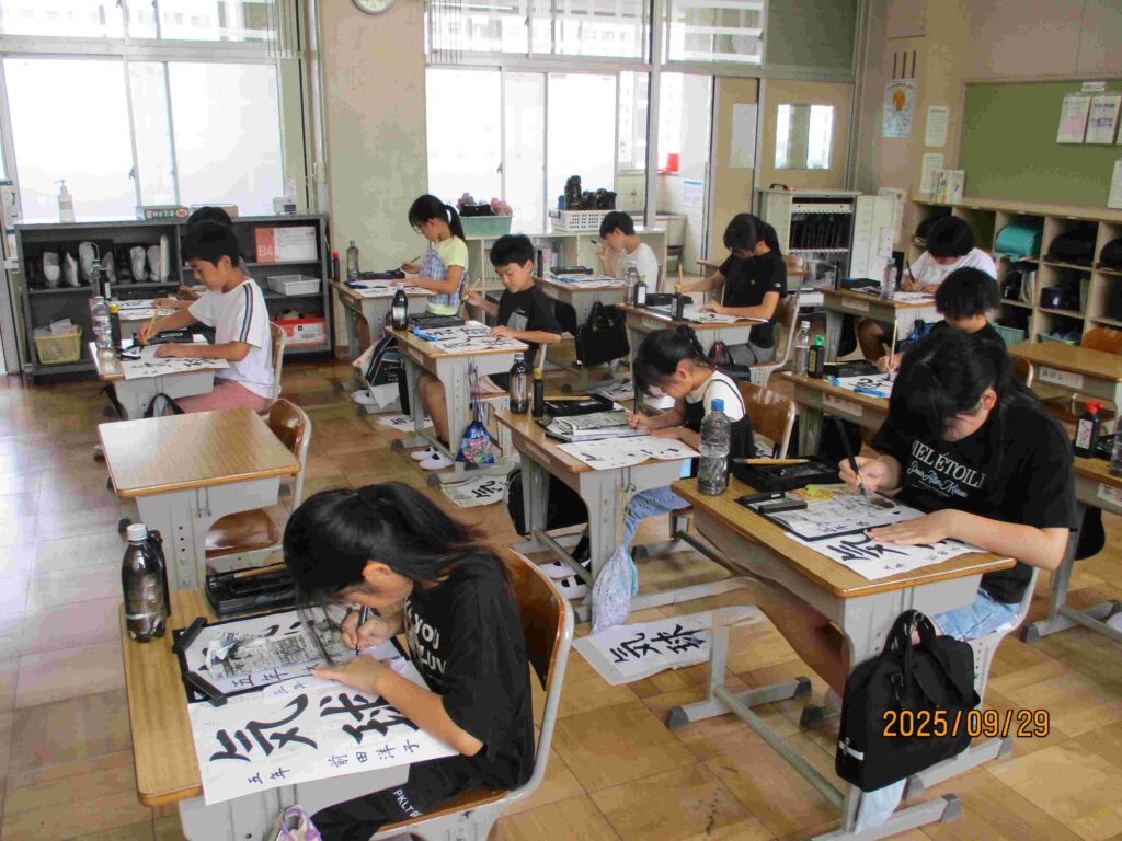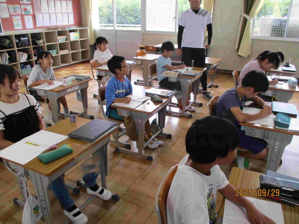 5年生は書写「気球」を練習していました。一筆一筆を大切にして書き上げていきました。小声で「よし」とつぶやきが聞こえたので、書かれた字を見ると「球」の点が…。慌てて、点を打っていました。セーフです。