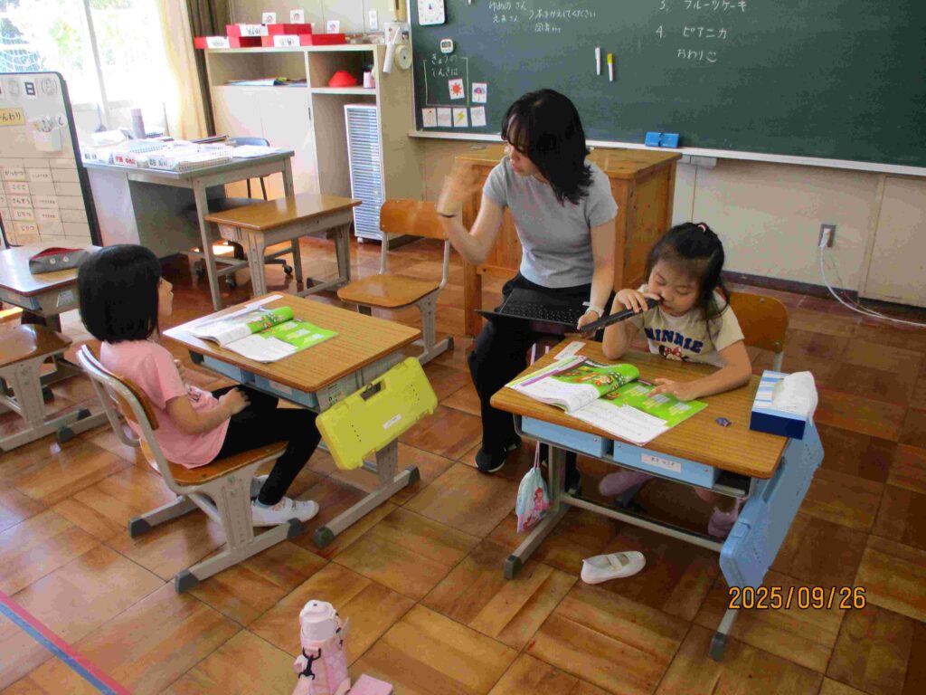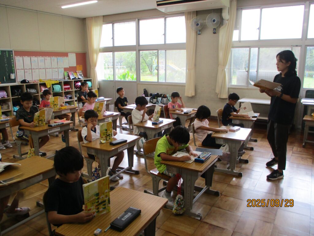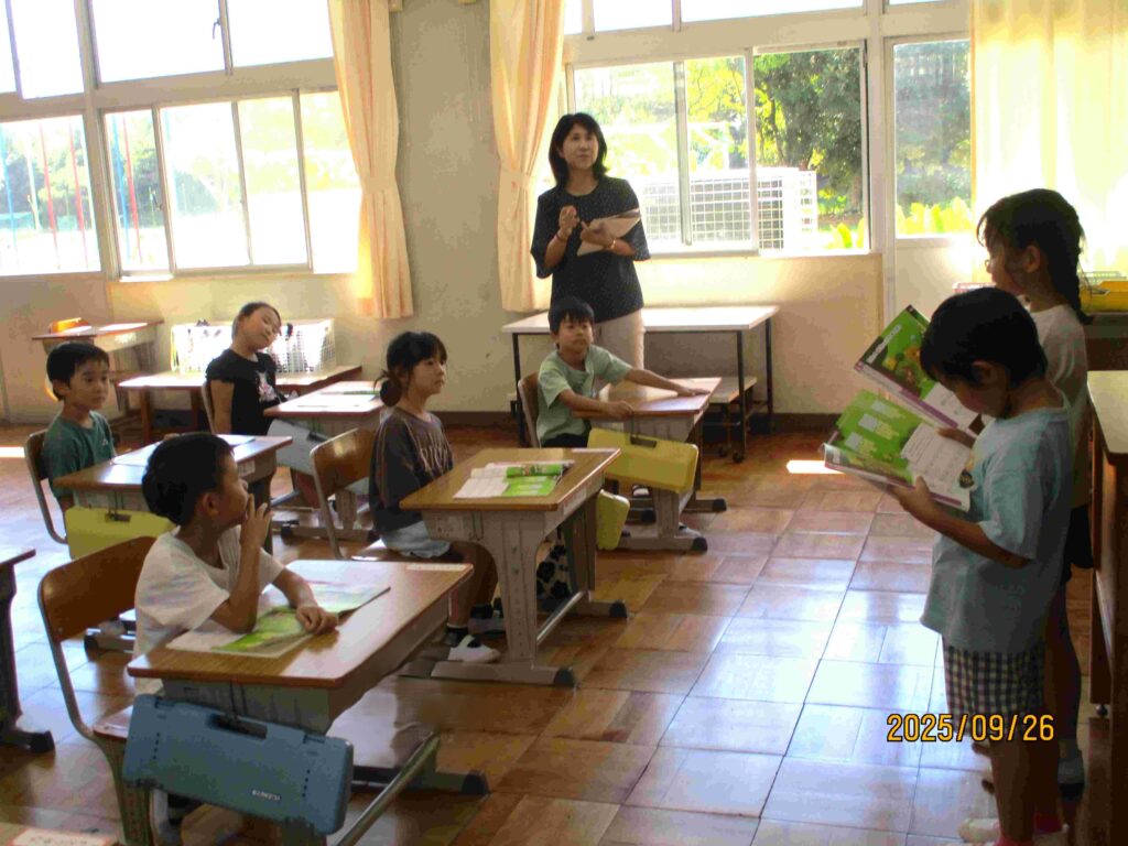 2年生国語「いろはうた」の読みの様子です。口をしっかり開けて、滑舌よくよんでいきました。昔の文字もありましたが、目と耳で確かめながら読んでいきました。大変よくできました。