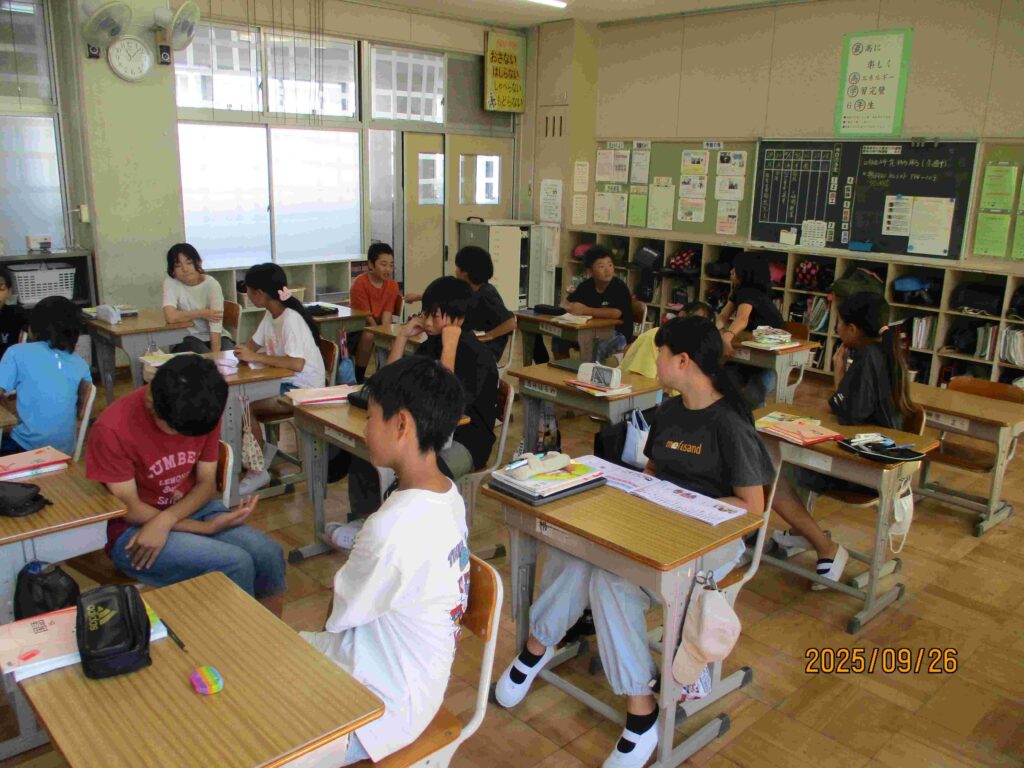 5年生は、1・2時間目に総合的な学習で「SDGs」について講師の先生をお招きし、学習しました。「SDGsとは何か」を知り、その後ゲームを通して、持続可能な開発目標について学びました。子どもたちは、楽しみながらゲームを進めました。経済活動が進むにつれ、環境保全が悪くなり始めると、これではいけないと思い、友達同士で話し合い、改善していくしていきました。この学習を通して、自分たちの未来をどうしていきたいか考えていってほしいと思います。