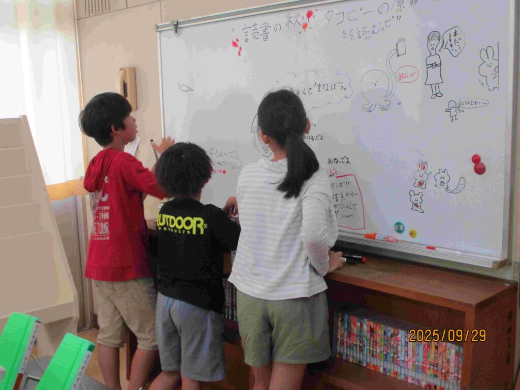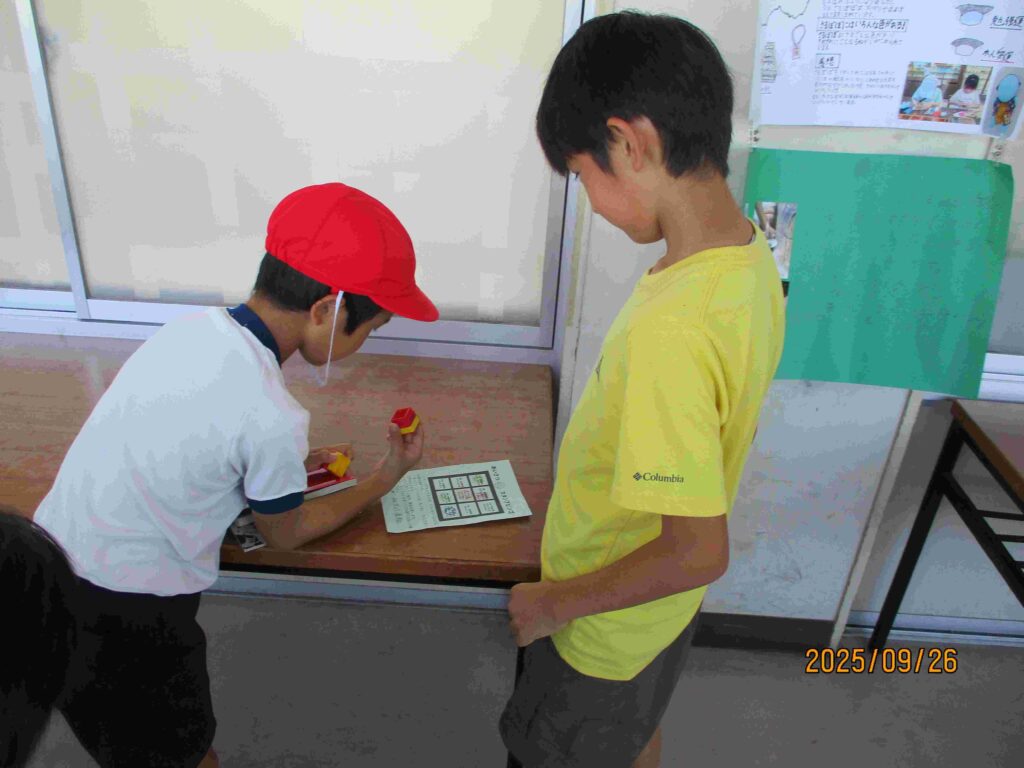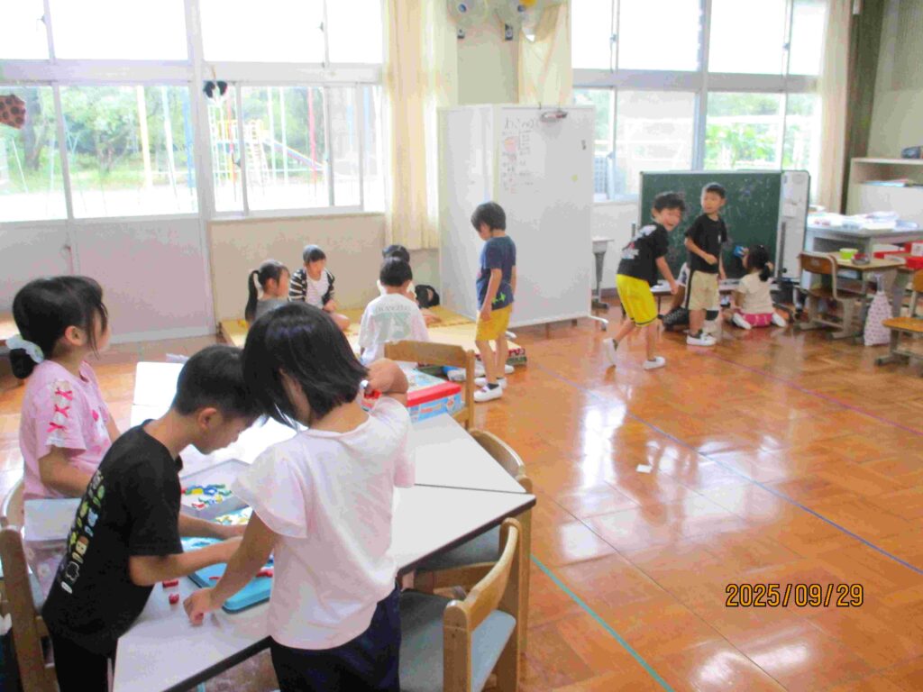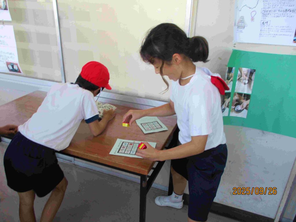 休み時間の様子です。雨のため、室内で過ごしました。体育館で体を動かしたり、教室でトランプやパズル、読書をしたりしました。また、委員会や児童会の仕事をする子たちもいました。自分が主体となって動くことができていました。