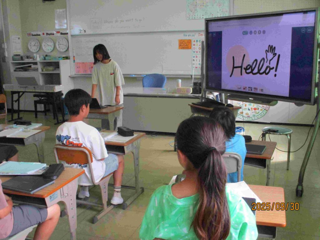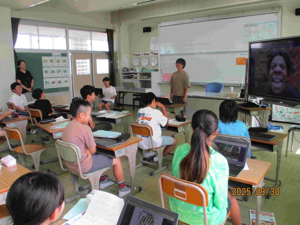 4年生外国語では時間の表現を学習していました。電子黒板に示された時計を見て、答えていきました。時差のことが話題になり、国内に時差がある国についてや、日本と他国の時差についても学ぶことができました。