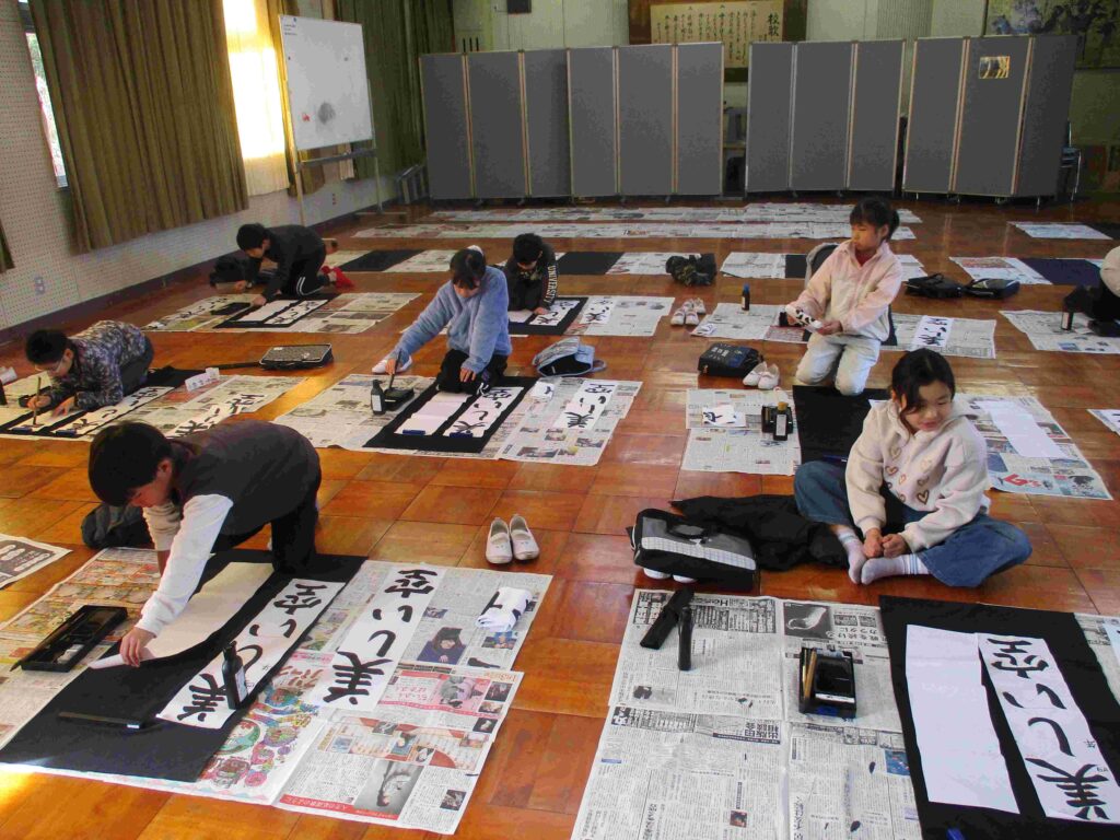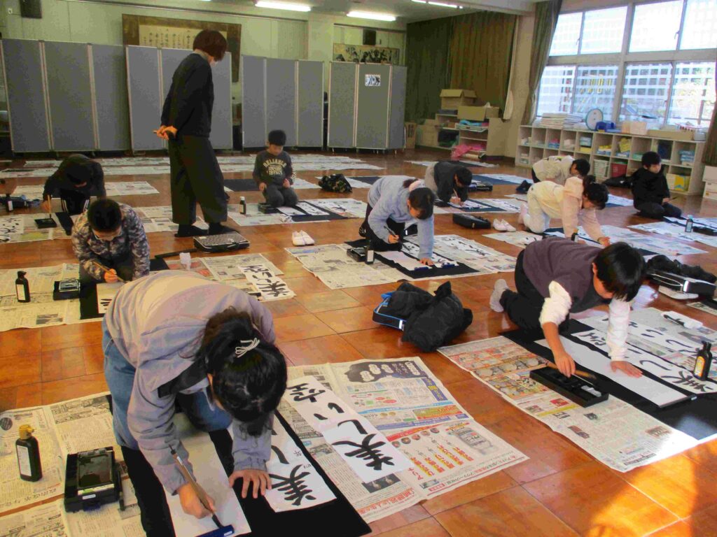 12/11(木)書き初め練習(4年生) 投稿日時: 2025年12月11日 投稿者: 布土小学校 一筆入魂。呼吸を整え、手本をよく見て、筆を運びました。1枚目よいも2枚目が、そして3枚目と文字が、作品全体がよくなっていきました。すばらしいできばえでした。本番が楽しみです。