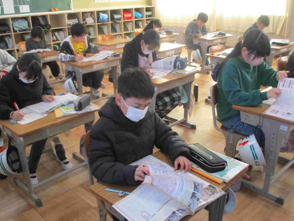 5年生は社会で「統計資料を読み取ろう」の学習です。さまざまな資料から何が見えてくるのかを考え答えていきます。数値やグラフを見つめ、教科書を手に取って答えていきました。特徴や変化など読み取ることができたかな。