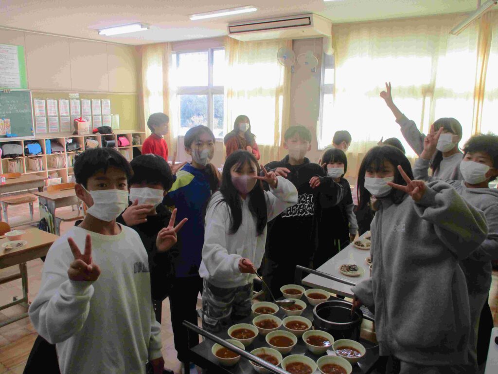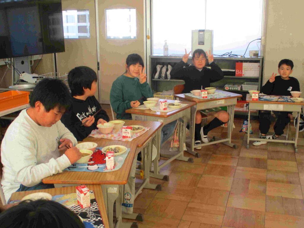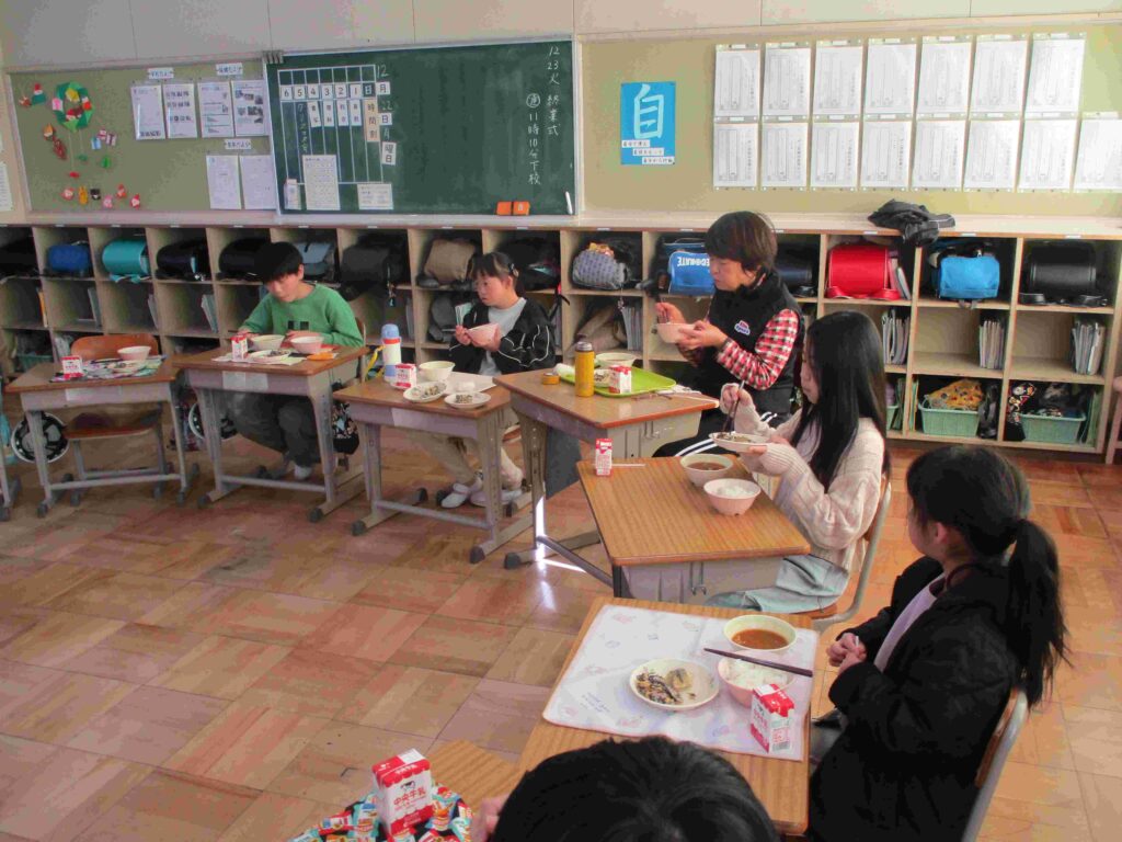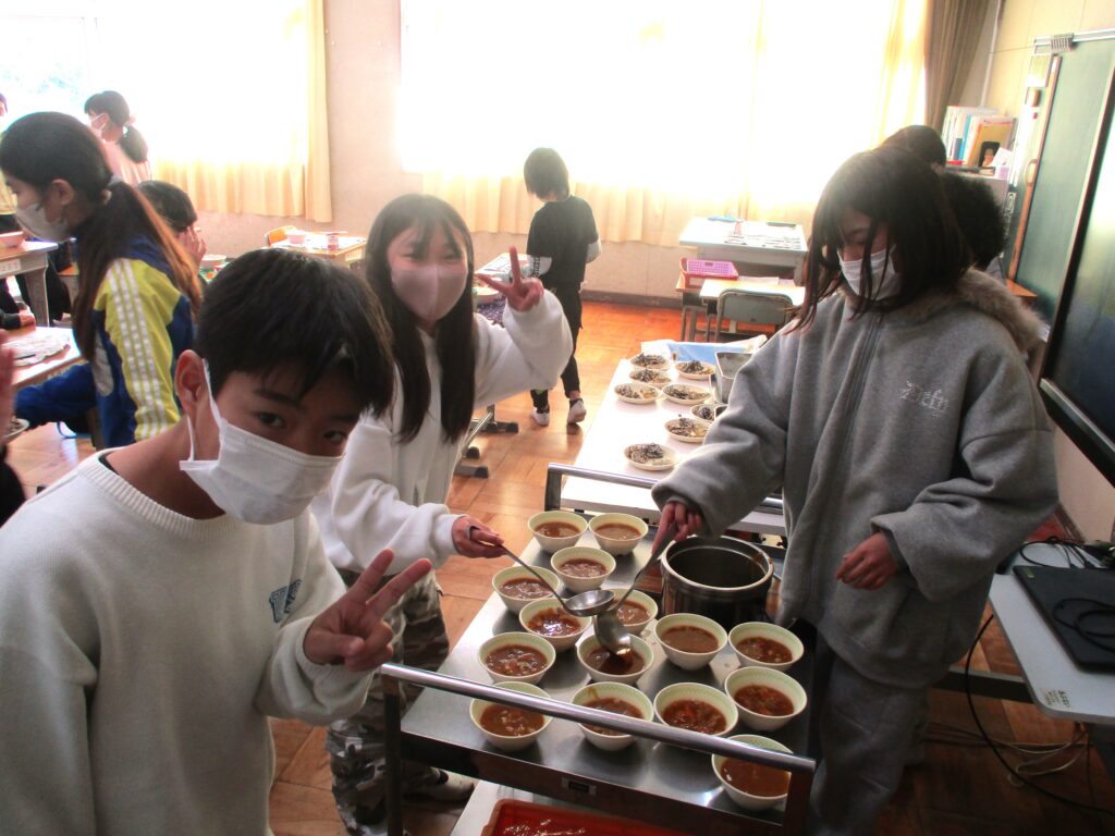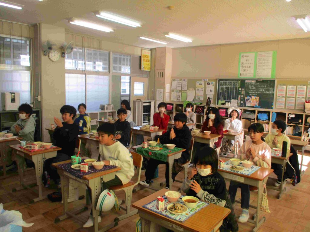 待ちに待った給食の時間。子どもたちからは「この時間が最高だよね!」との声。笑顔が教室中に広がっていきました。2学期最後の献立は、ご飯・牛乳・鰆のゆず味噌かけ、蓮根とひじきのごま和え、南瓜の味噌汁でした。冬至にちなんだメニューをしっかり味わいました。給食センターの皆さん、配膳員さん、いつもおいしい給食をありがとうございました。3学期もよろしくお願いします。
