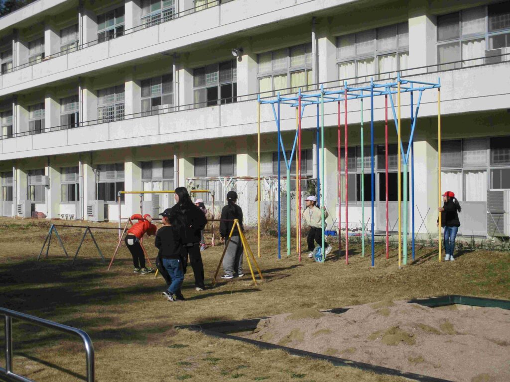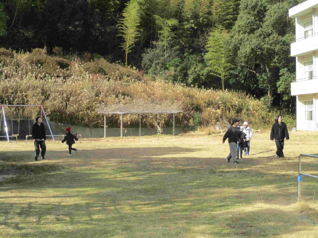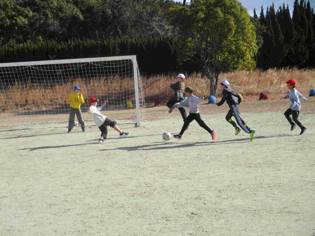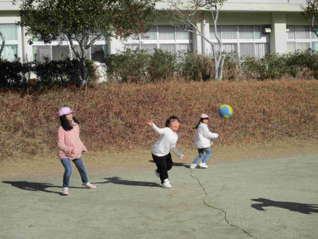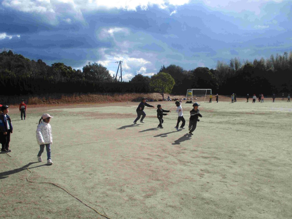 大放課、子どもたちが元気いっぱい運動場を駆け回っていました。寒空、冷たい風も何のその。たくましい限りです。力いっぱい走って、投げて、蹴って体力アップですね。