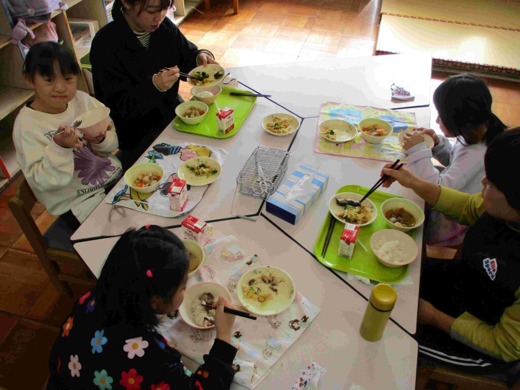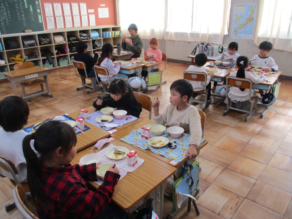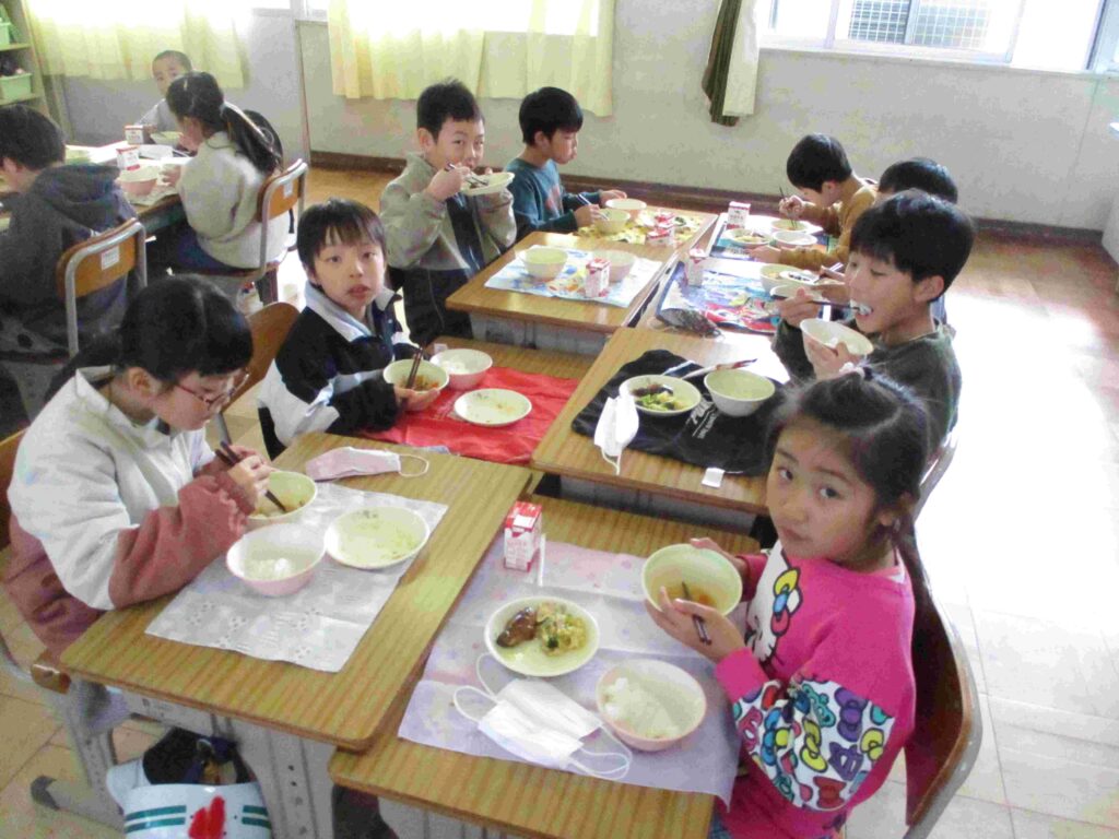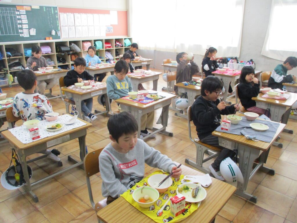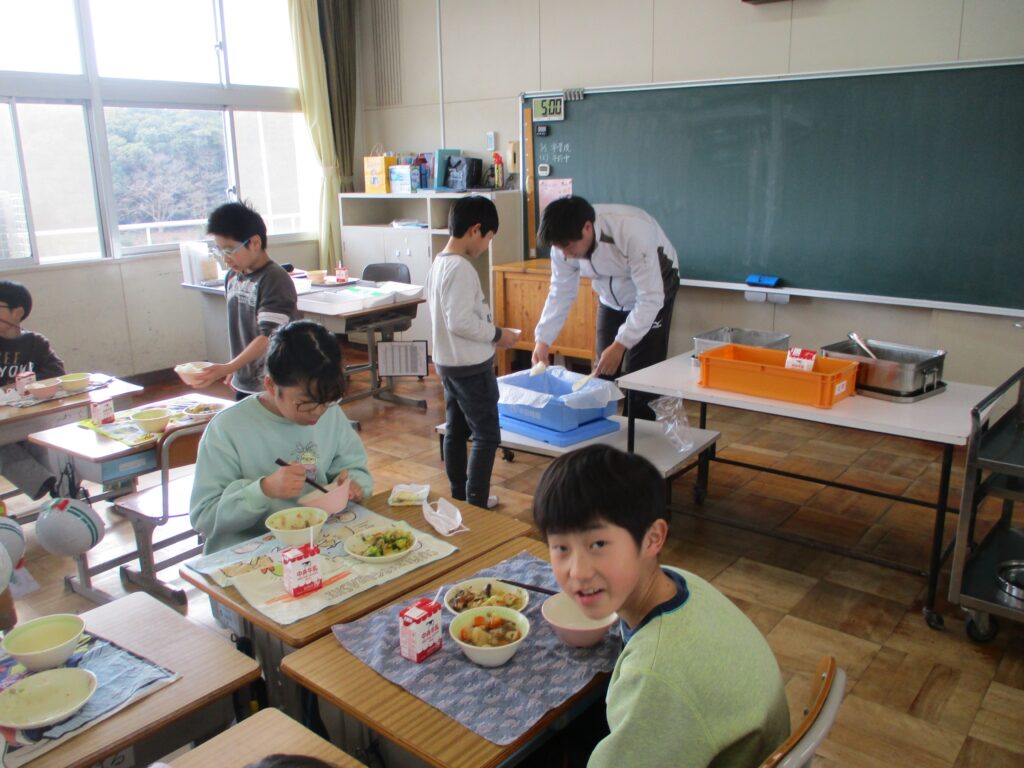 今日は3町(武豊・美浜・南知多)合同給食です。地産有機農産物を利用したすてきな献立(ご飯、牛乳、豚肉と大根の煮物、いわしの梅煮、ブロッコリーのおかか和え)です。子どもたちの食べっぷりもよく、しっかりとエネルギーチャージができました。(おかわりする子も多かったです。)身体が喜ぶ栄養素を意識して、日々の食生活を大切にしていきたいと思います。給食センターの皆さん、おいしい給食、ありがとうございました。