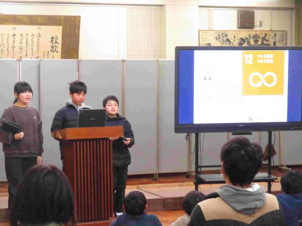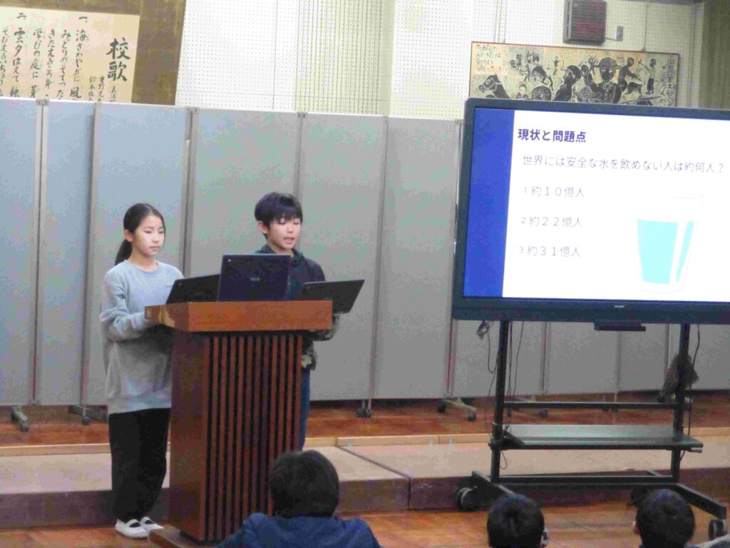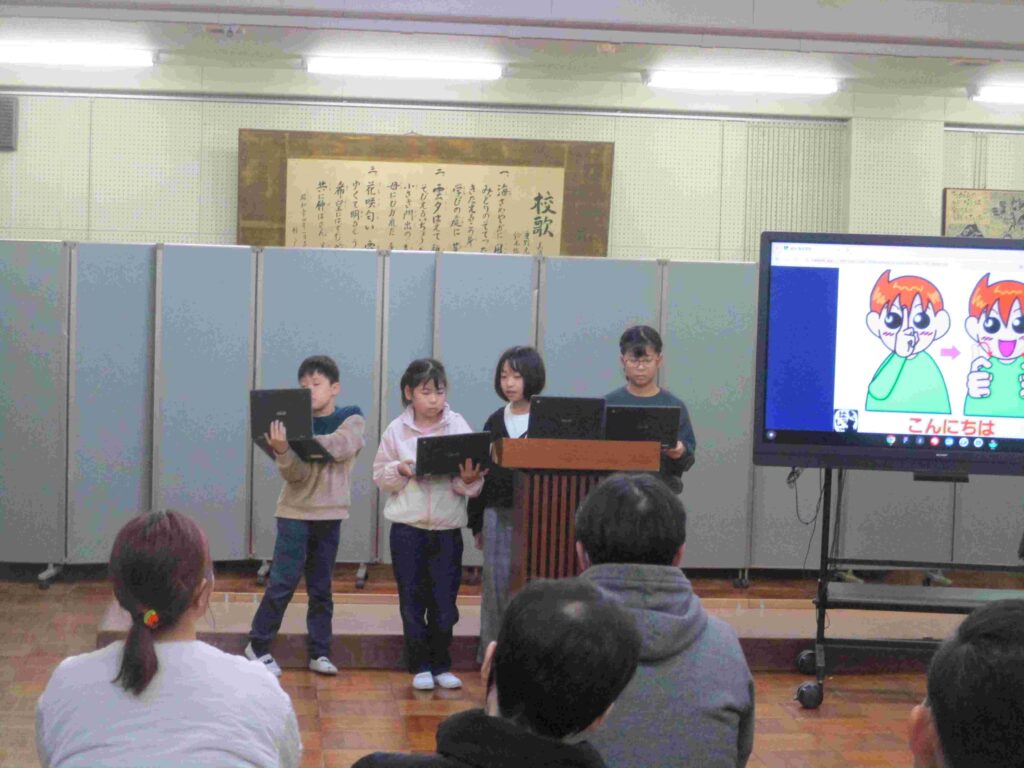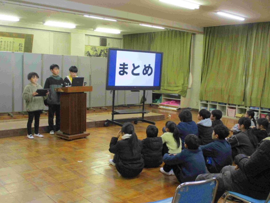 4年生は「普段の暮らしの幸せ ~私たちにできることは何だろう~」と題して、福祉実践で学んだことを発表しました。