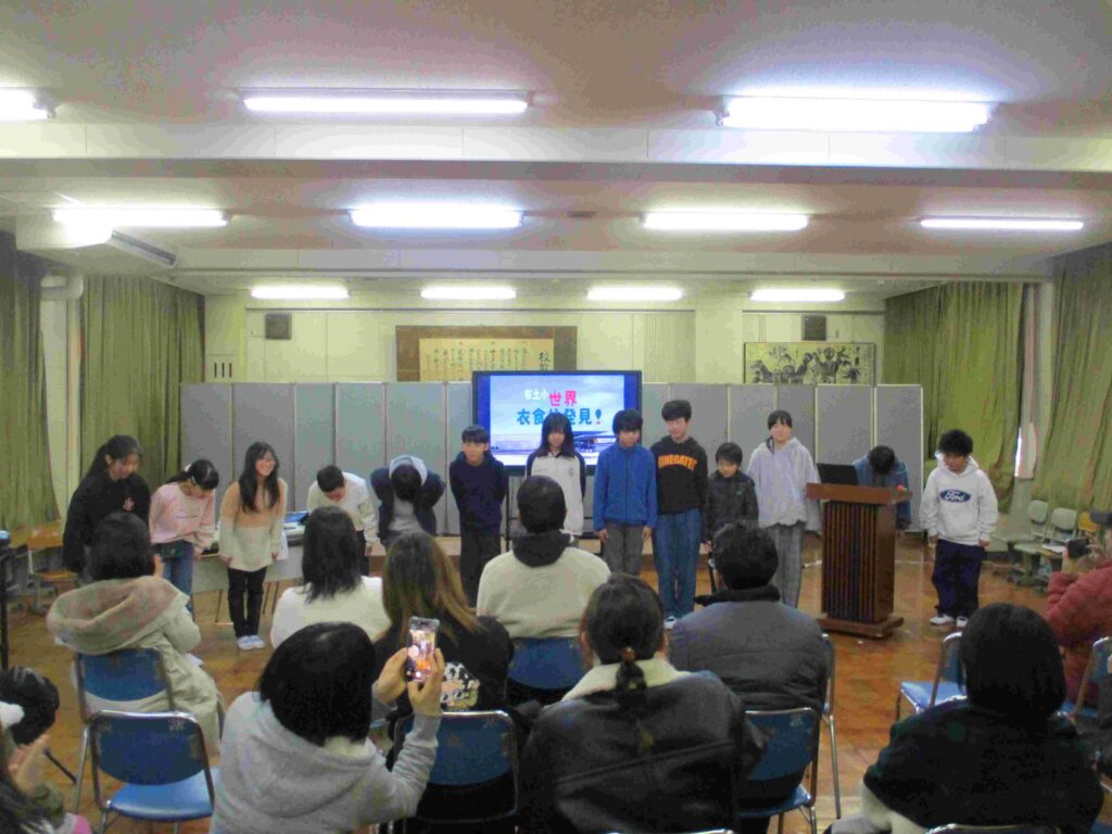 6年生「世界 衣・食・住 発見!」では、各国の衣食住を、TV番組仕立てで発表しました。歯切れよく、ユーモアを含んだ内容でした。