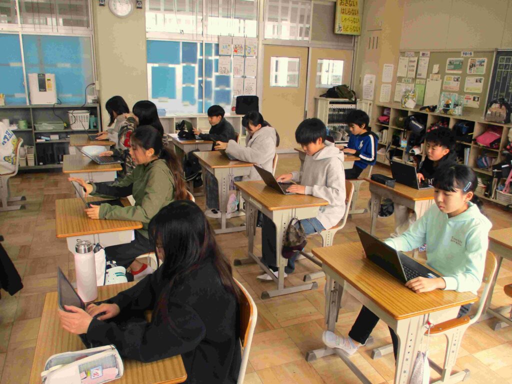 6年生情報ではAIを活用して、知りたいことを調べていました。IC支援員さんにもお力添えをいただいて、活用方法や注意点などにも触れて授業が進められていました。正しい活用方法を学習することができました。