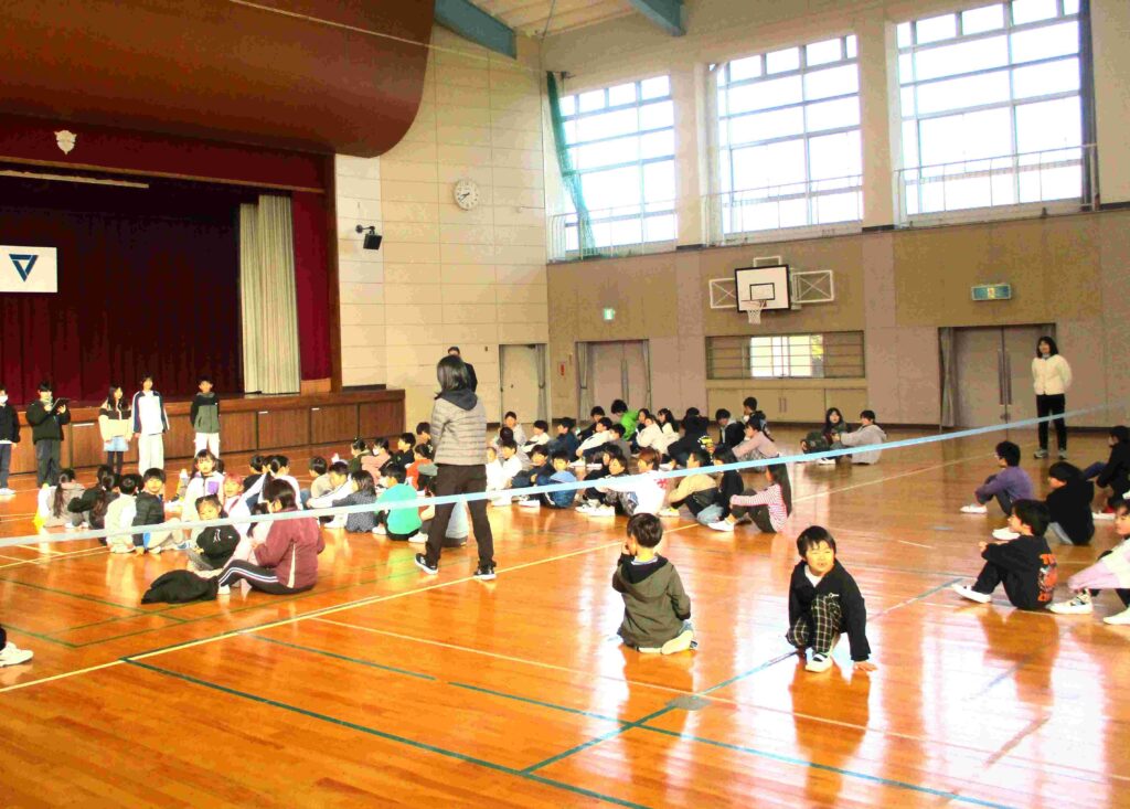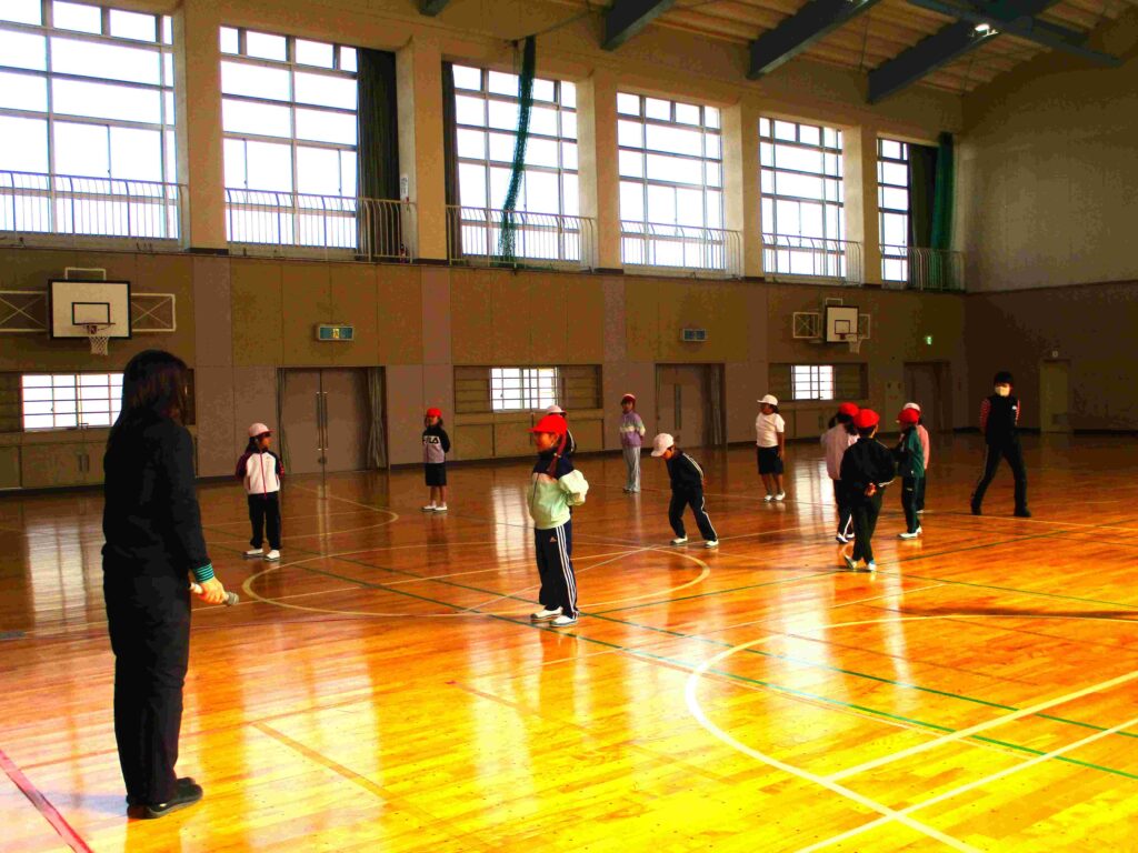 1年生体育の終盤の様子です。子どもたちに内容を聞いたら「ヒ・ミ・ツ」と教えてくれました。先生いわく、「ヒミツの特訓」とのこと。でも子どもたちはニヤニヤとフフフが入り交じった表情でした。何だか楽しみです。
