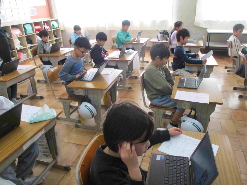 2年生情報の授業の様子です。ICT支援員さんの指導で画面に画像を貼り付けていました。一つずつできる操作を増やしていました。タイピングも以前より速くなってきています。