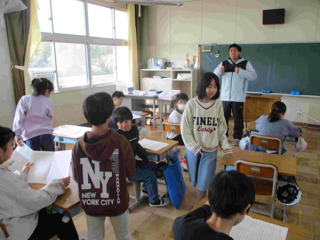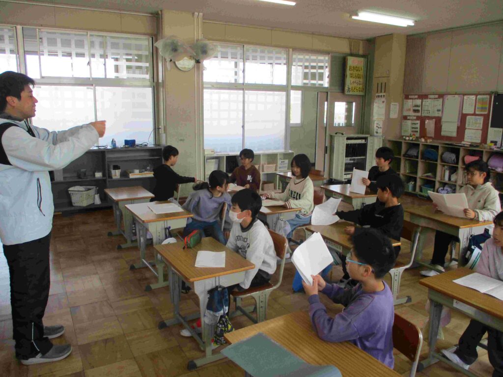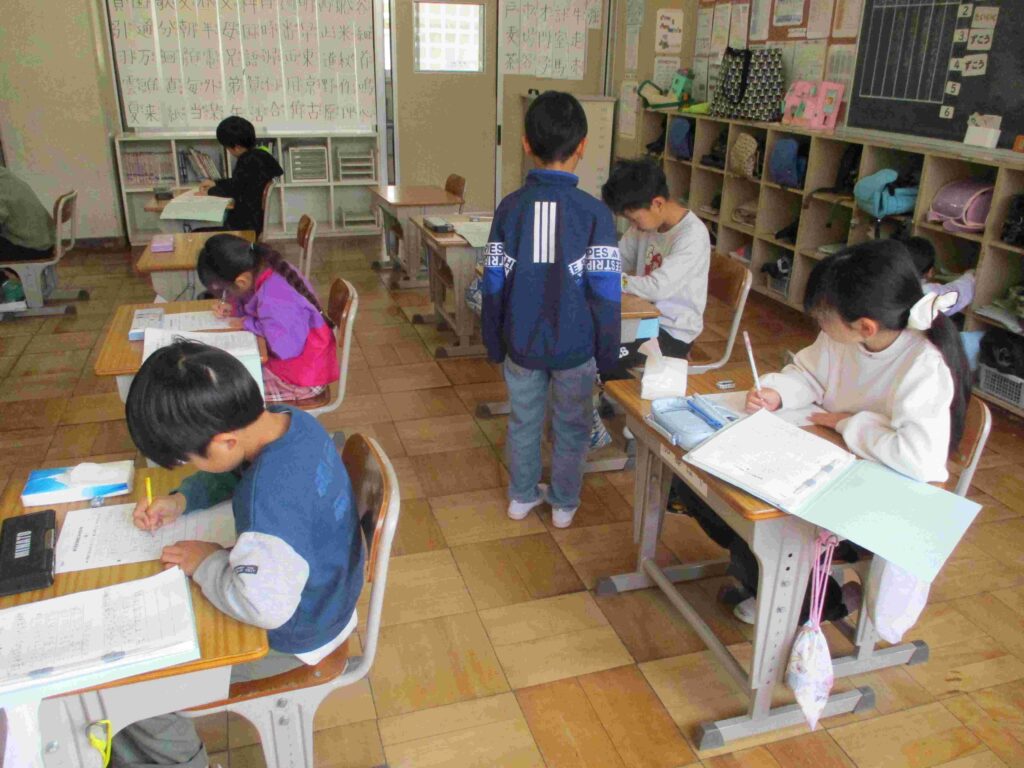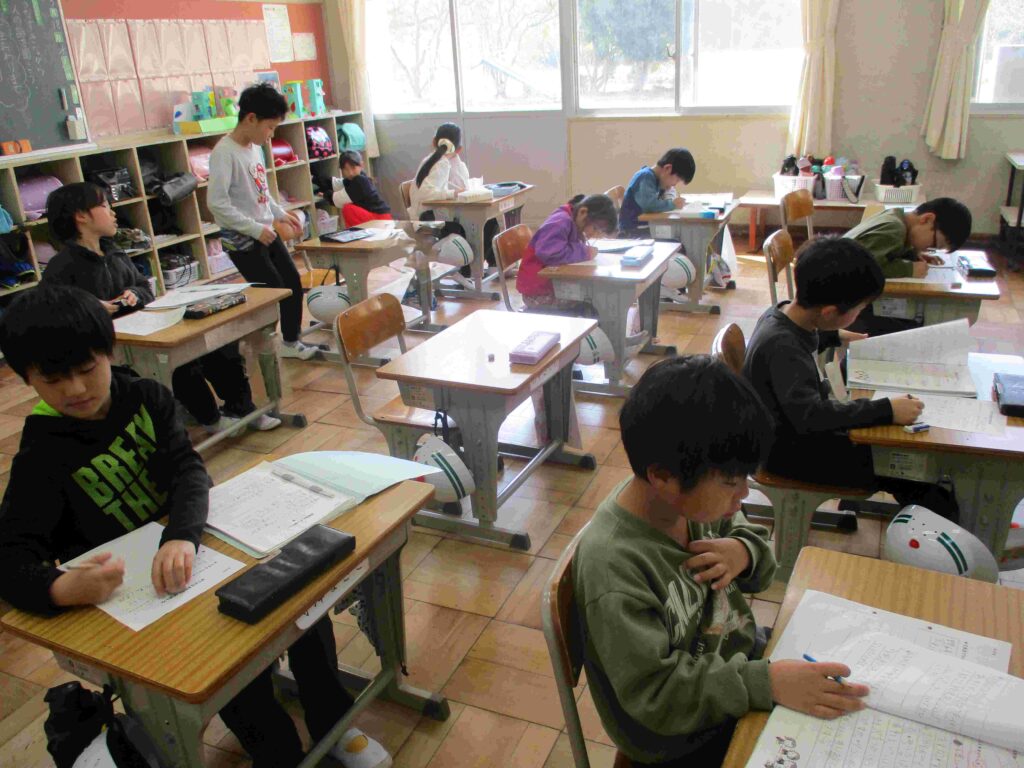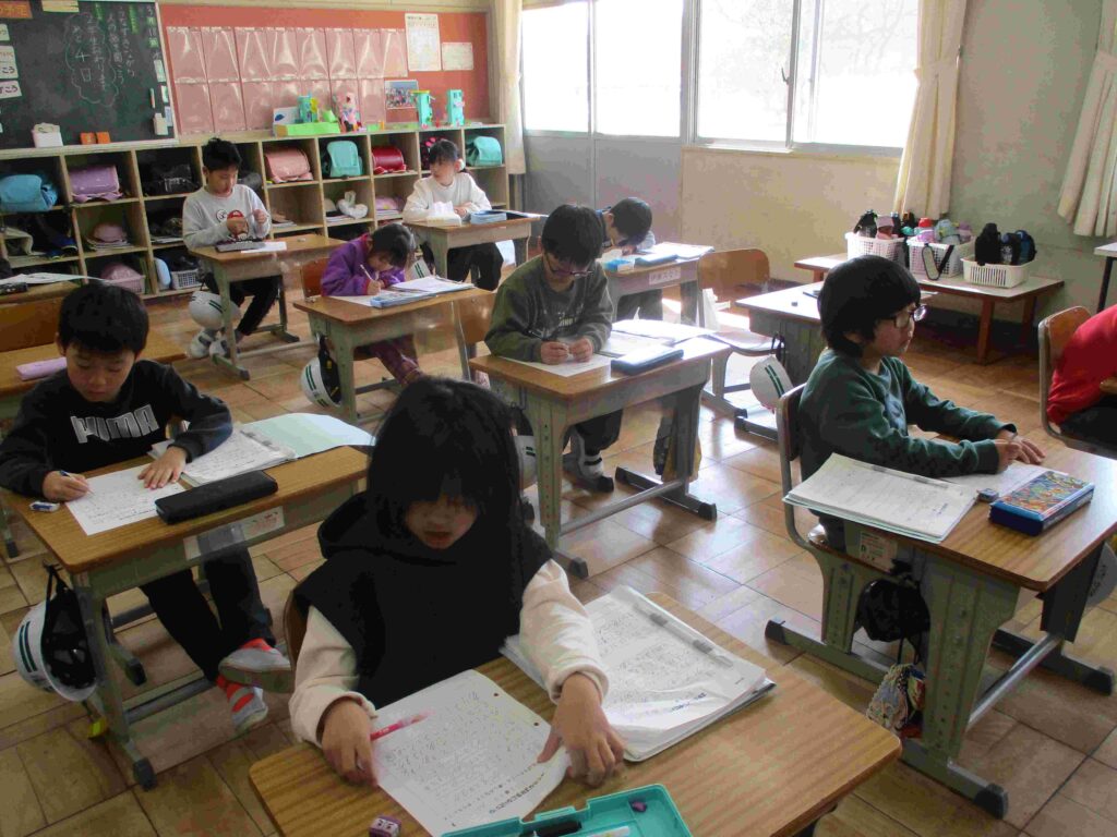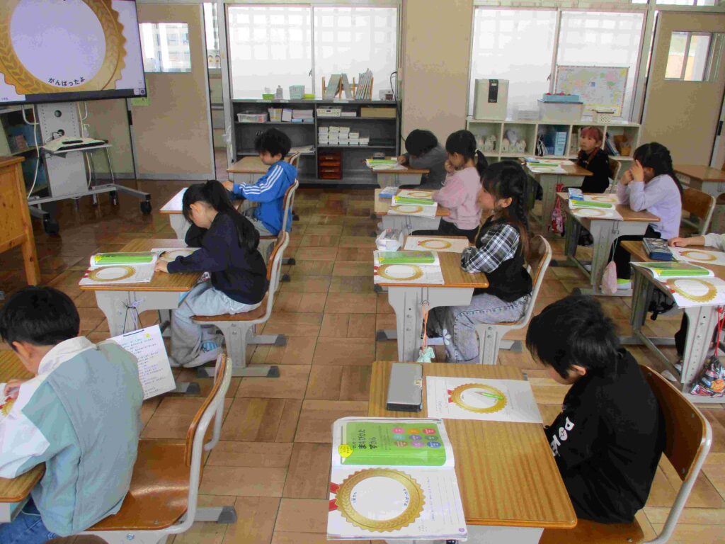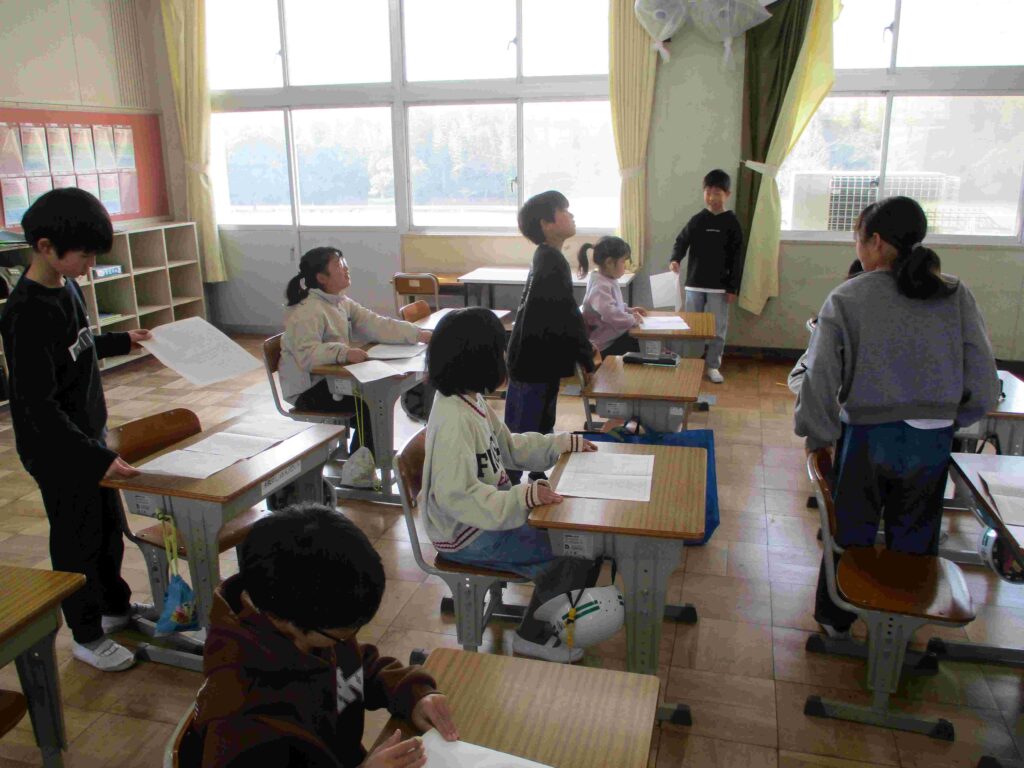 4年生国語では互いに作文を読み合い、よい表現方法について考えていました。新たな気付きや参考にしたいこと等を増やすことができました。