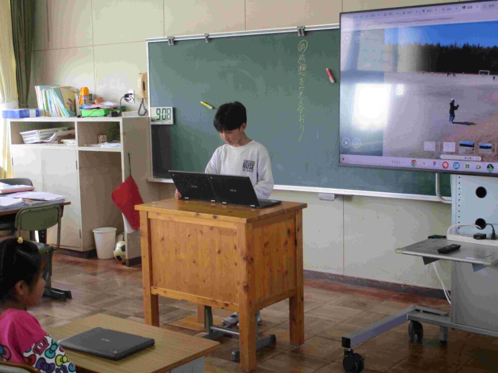 3年生は国語で学習した「はじめ、中、おわり」を使って説明文を作り、「お気に入りの場所」について発表しました。提示する写真もタブレットで撮影しました。聞き手に伝わりやすい説明ができていました。