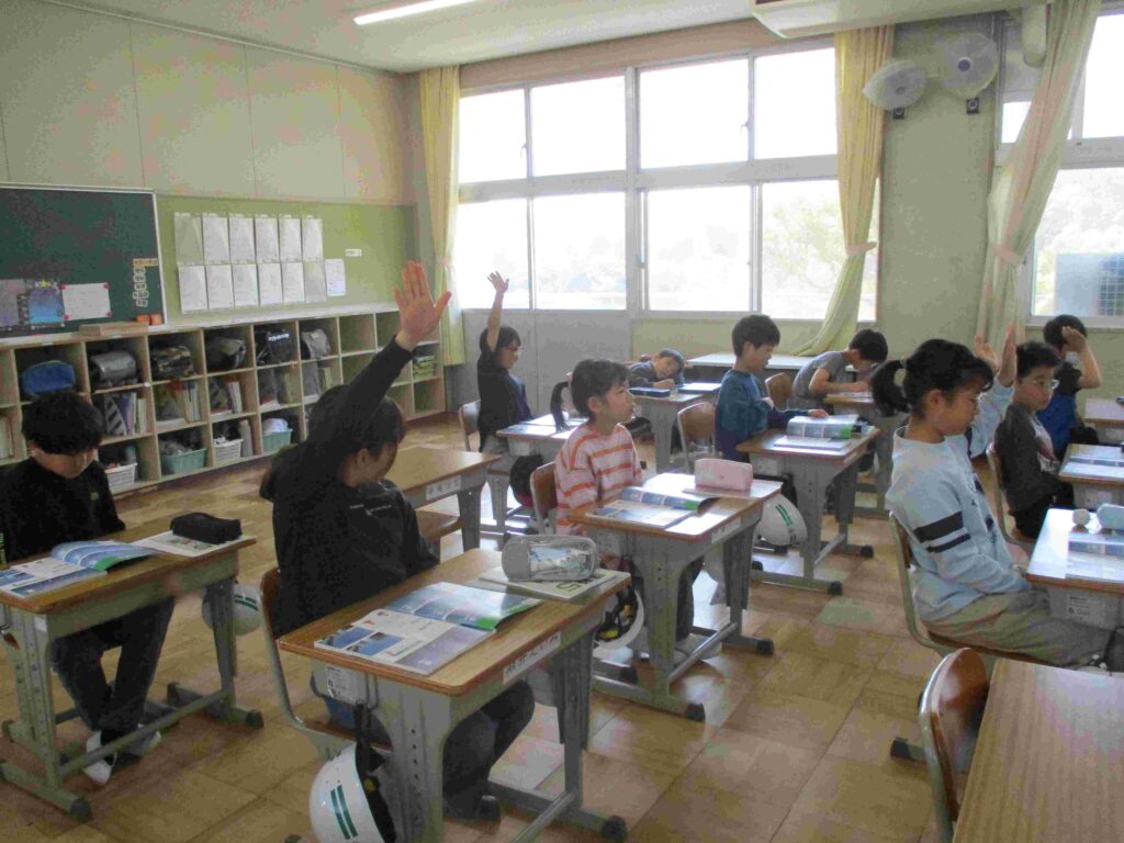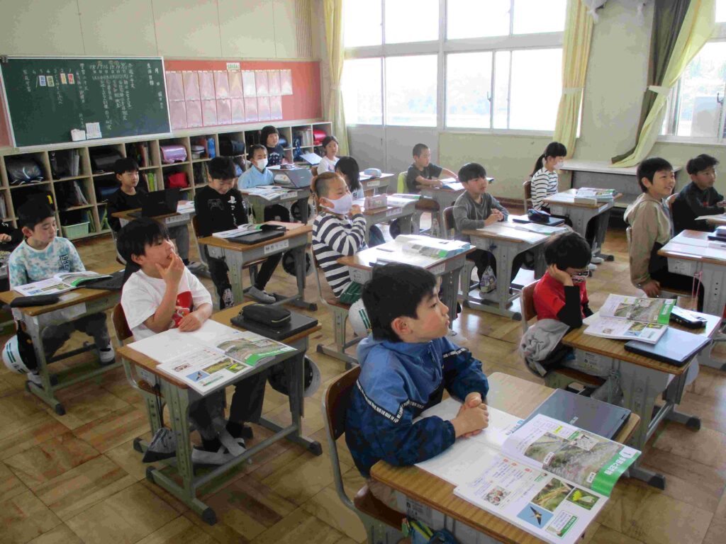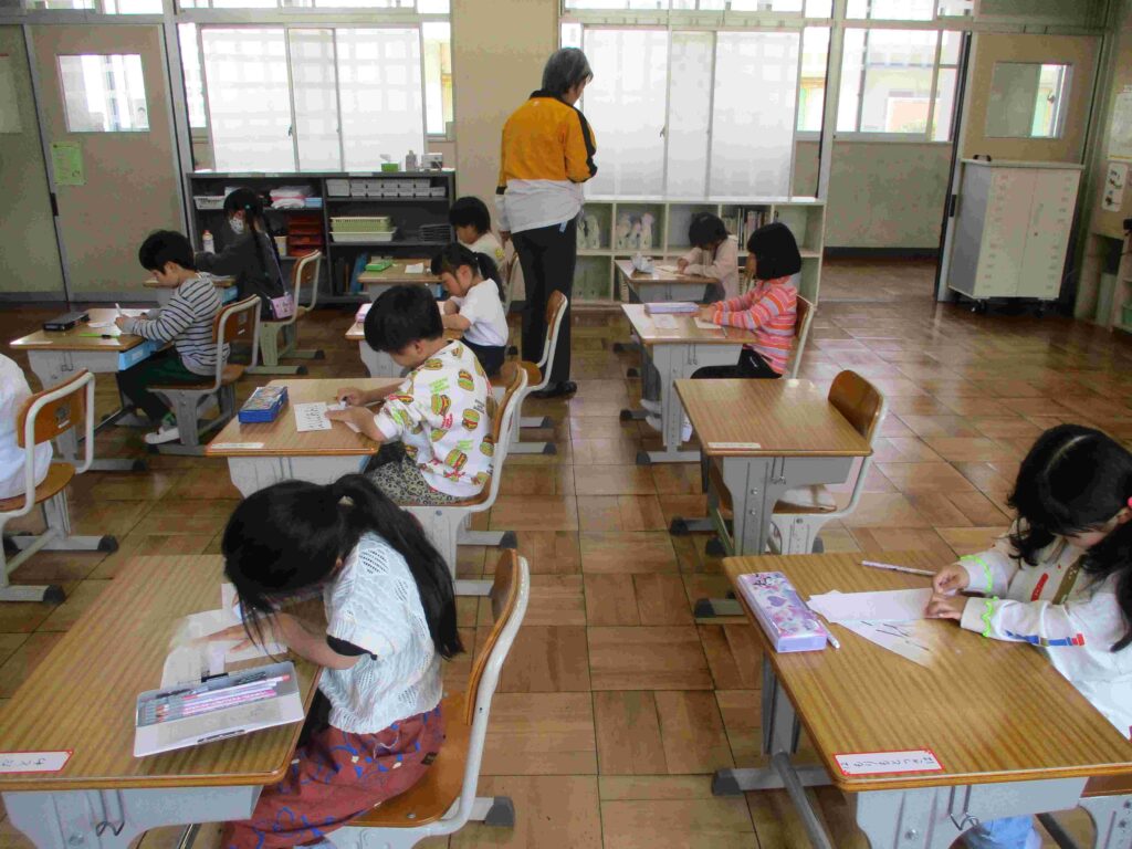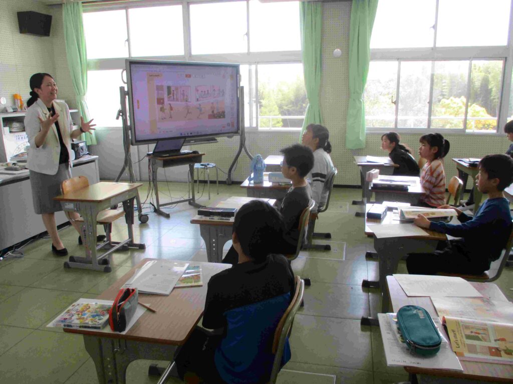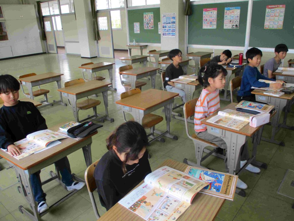 同じく、外国語の学習では4年生で学習した内容の復習をしました。見て、聞いて、話して…、ウォーミングアップはバッチリです。
