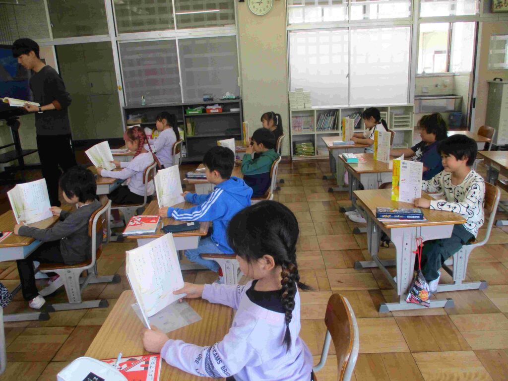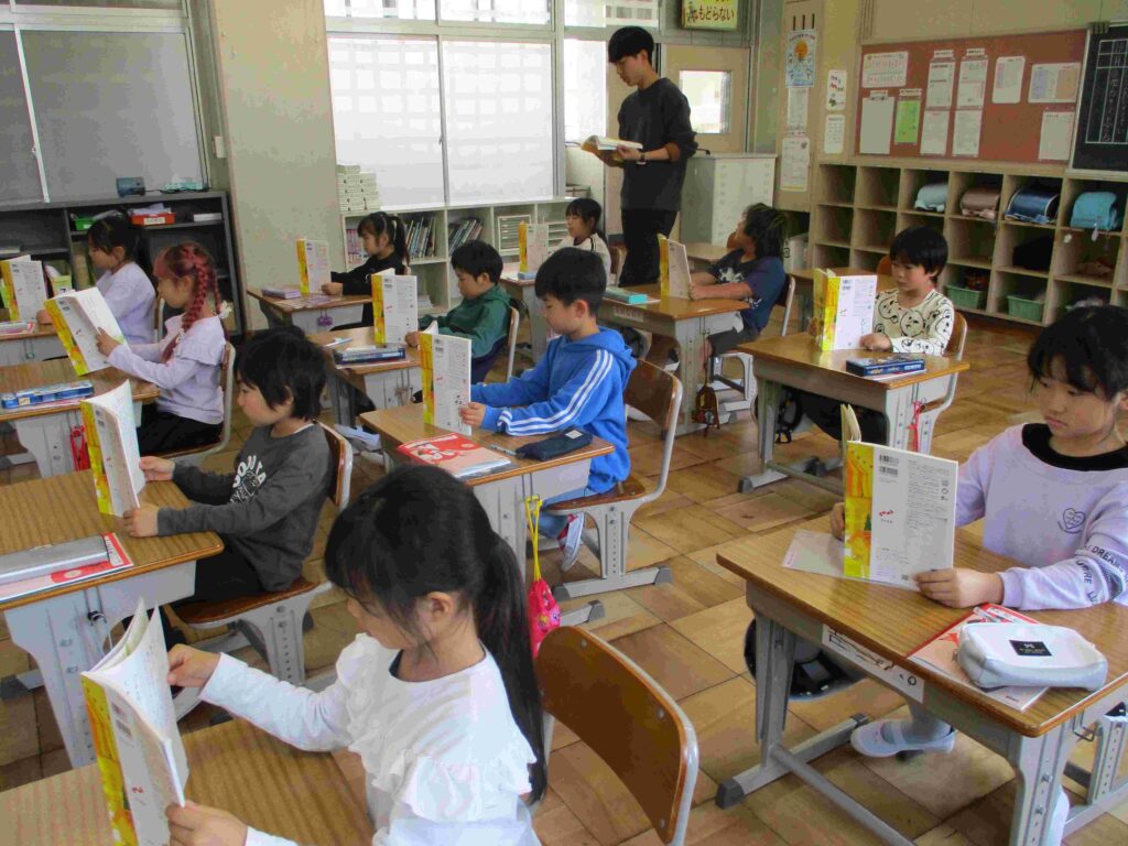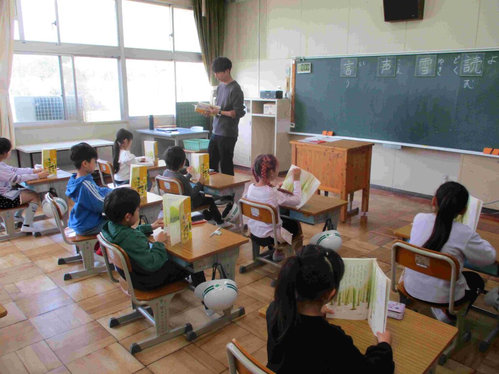 2年生は国語「ふきのとう」を読んでいました。雪の下のふきのとうが春をむかえて力強く地表に出てくる様子を感じ取っていました。ここから、気持ちをこめて読み上げていきます。