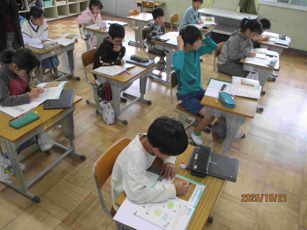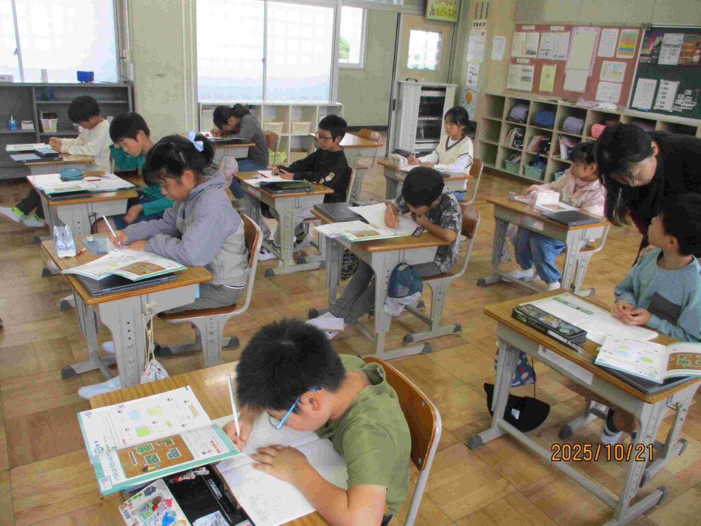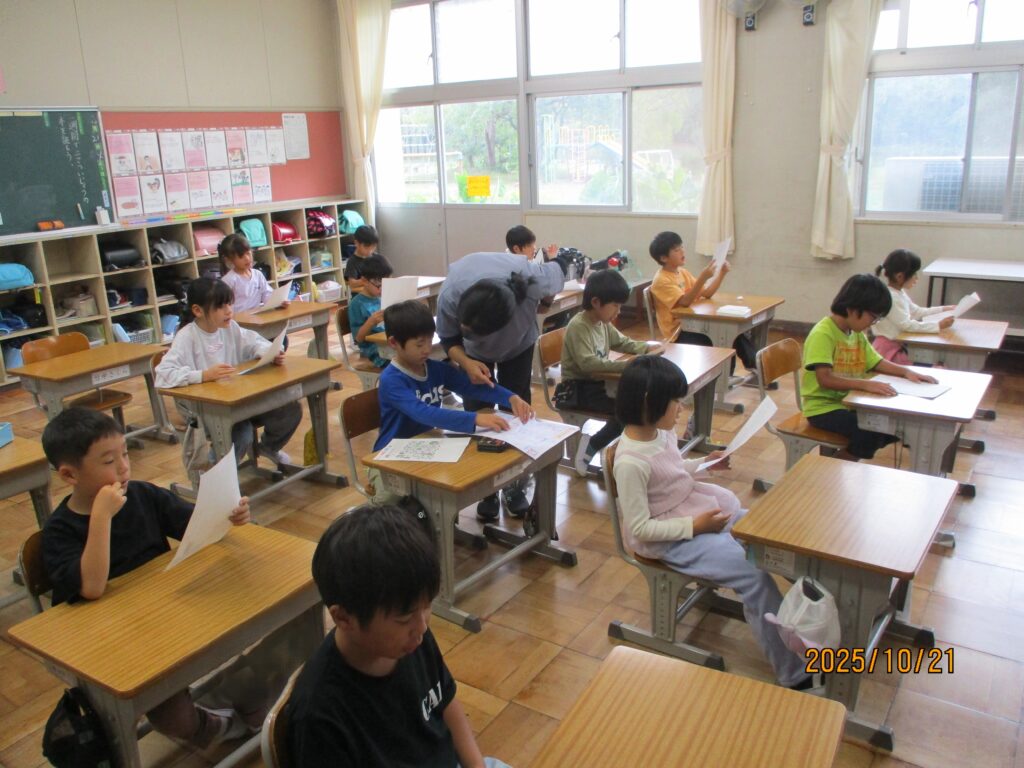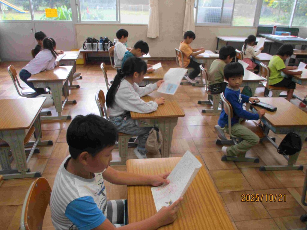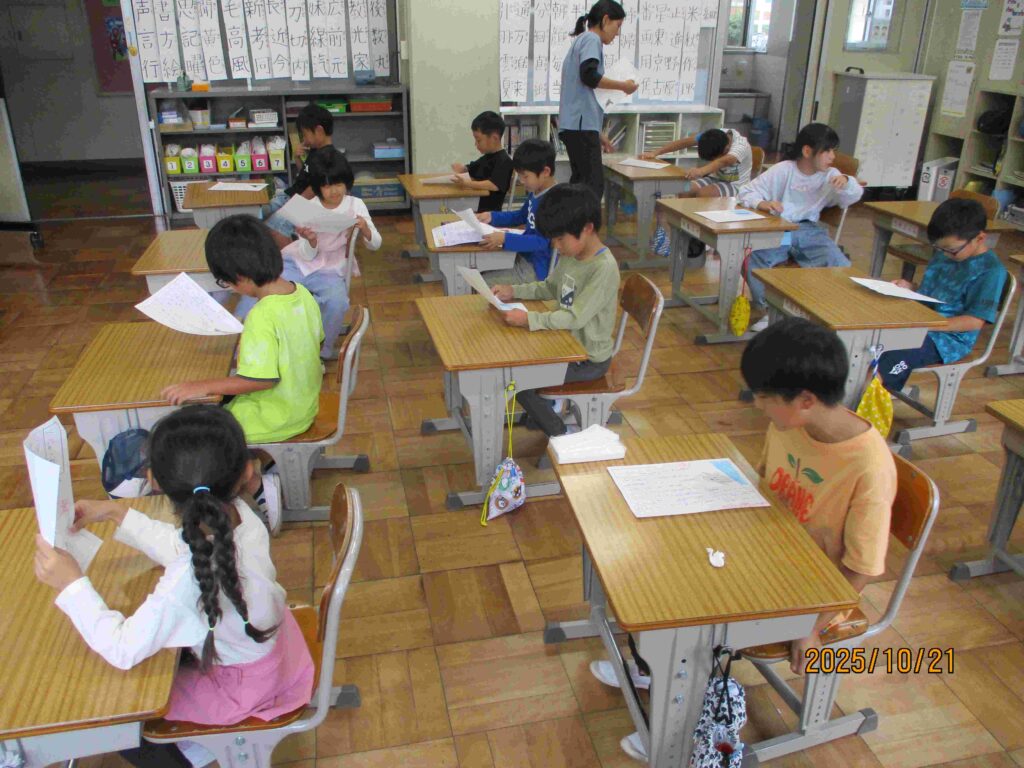 2年生 生活校外学習発表会に向けて、作成したレポートの原稿読みの練習をしました。姿勢よく、しっかり、はっきり読んでいました。