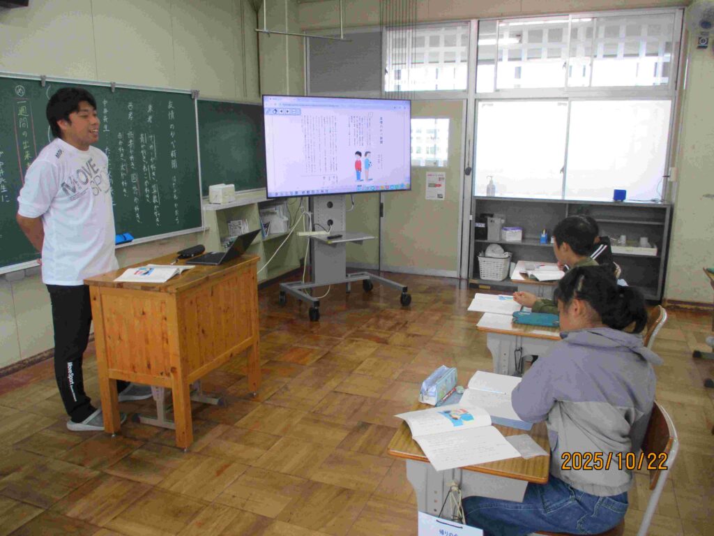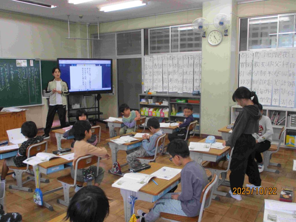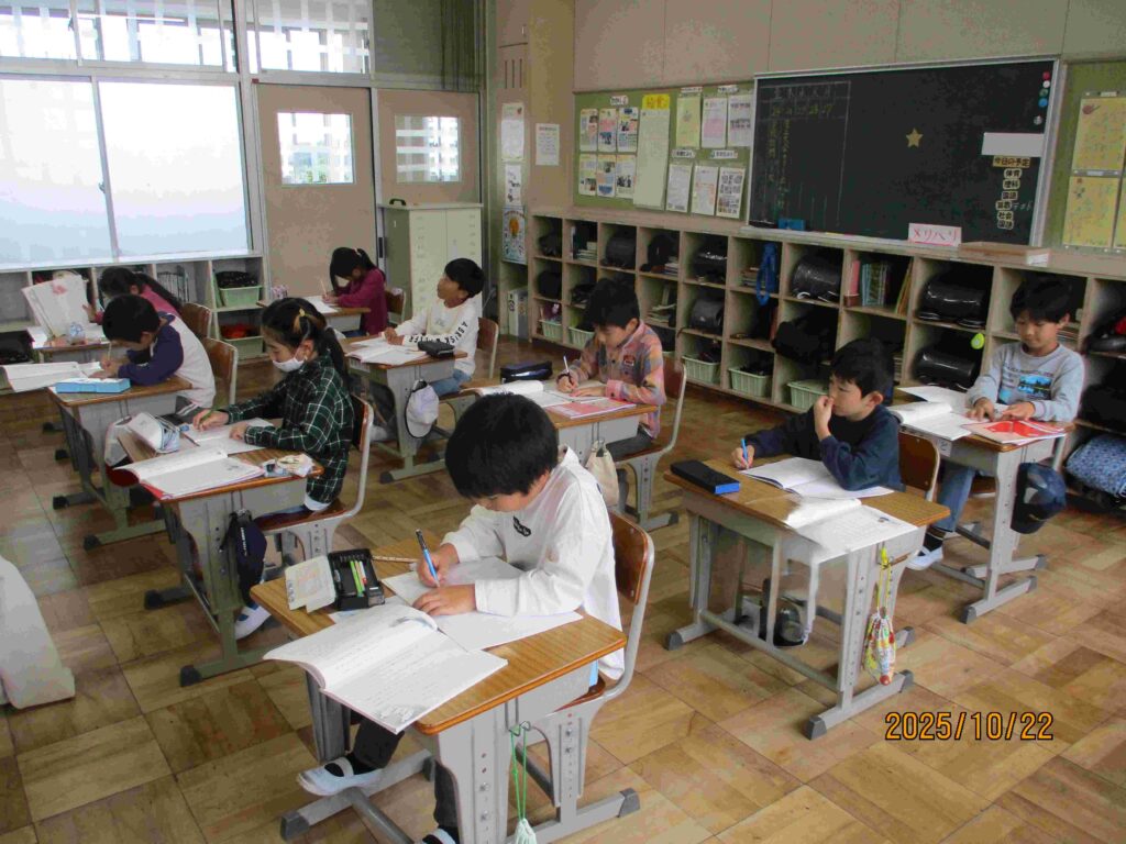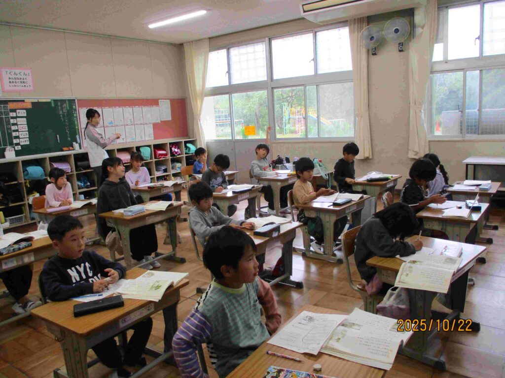 2年生国語「でがみ」の様子です。登場するかえるくんの気持ちについて考え、近くの友達と話したり発表したりしました。発表する子を見つめて、聞き入ったり、うなずいたりしていました。しっかりと「聞く」「受け止める」ができてきました。