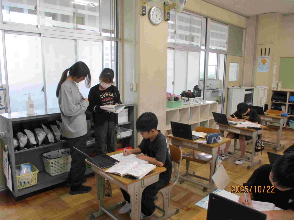 6年生は校外学習で出かける施設の見学ルートを決めていました。衣・食・住の体験と調査が6年生のミッション。世界の国々の特色をたくさんつかみにいきましょう。どの班も真剣でした。