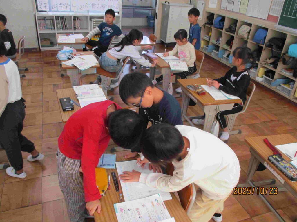 5年生家庭科では来週行う調理実習に向けて、準備する物について確認をしていました。ご飯と味噌汁を調理するようで、おかずを持参するとのこと。子どもたちはおかずとして何を持ってこようかと考え、先生にたくさん質問をしていました。来週が楽しみですね。