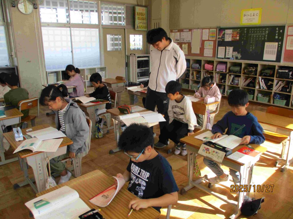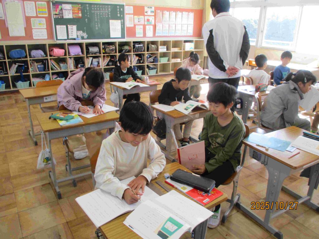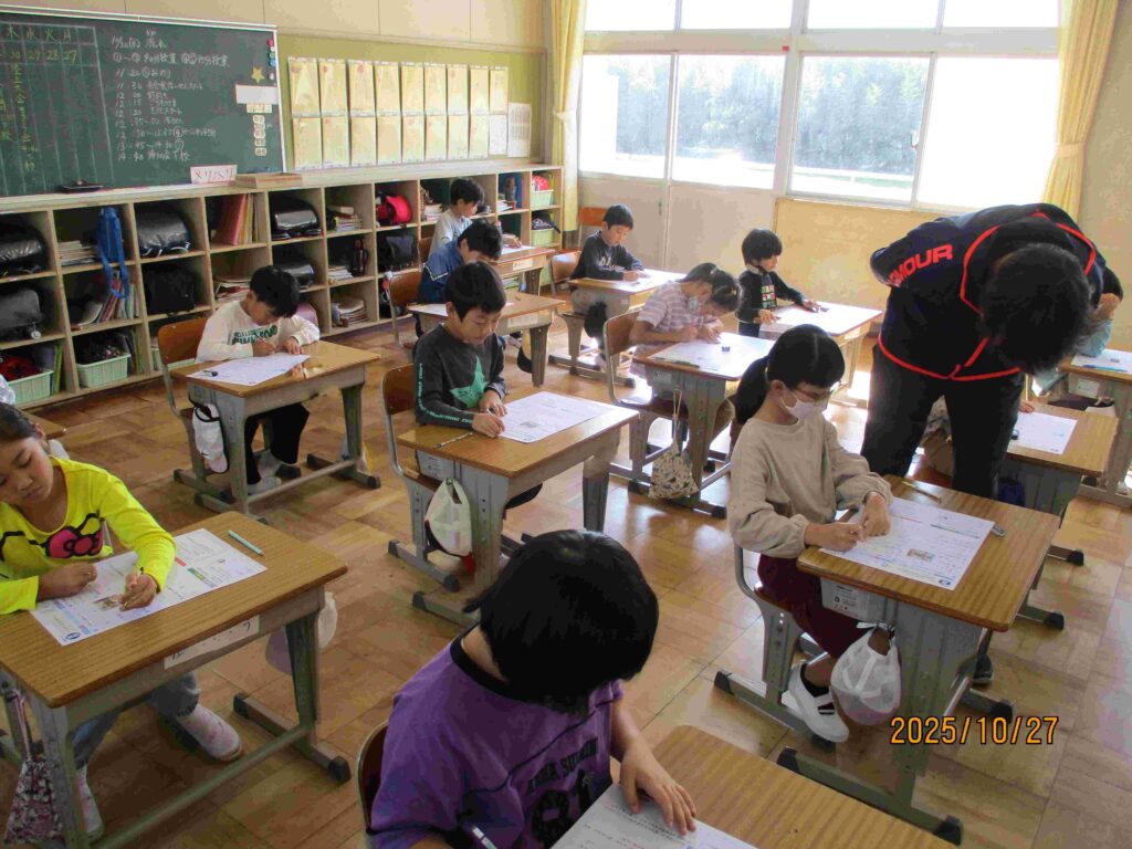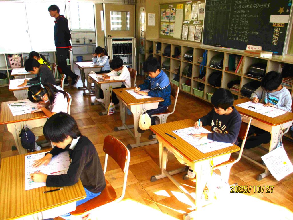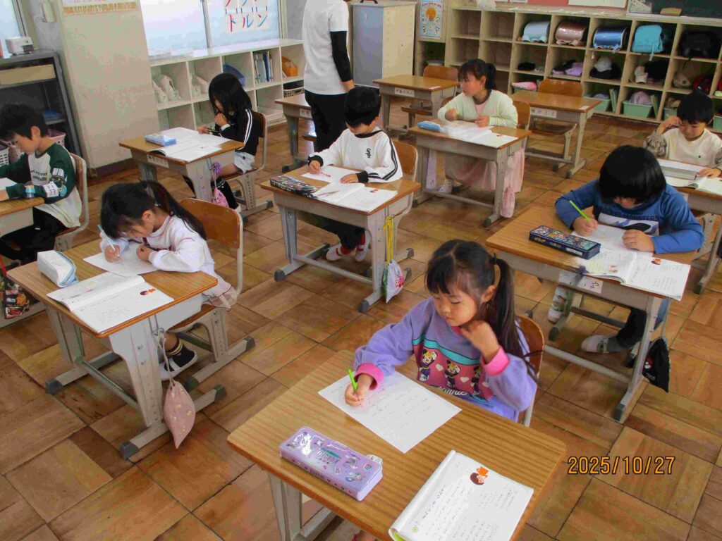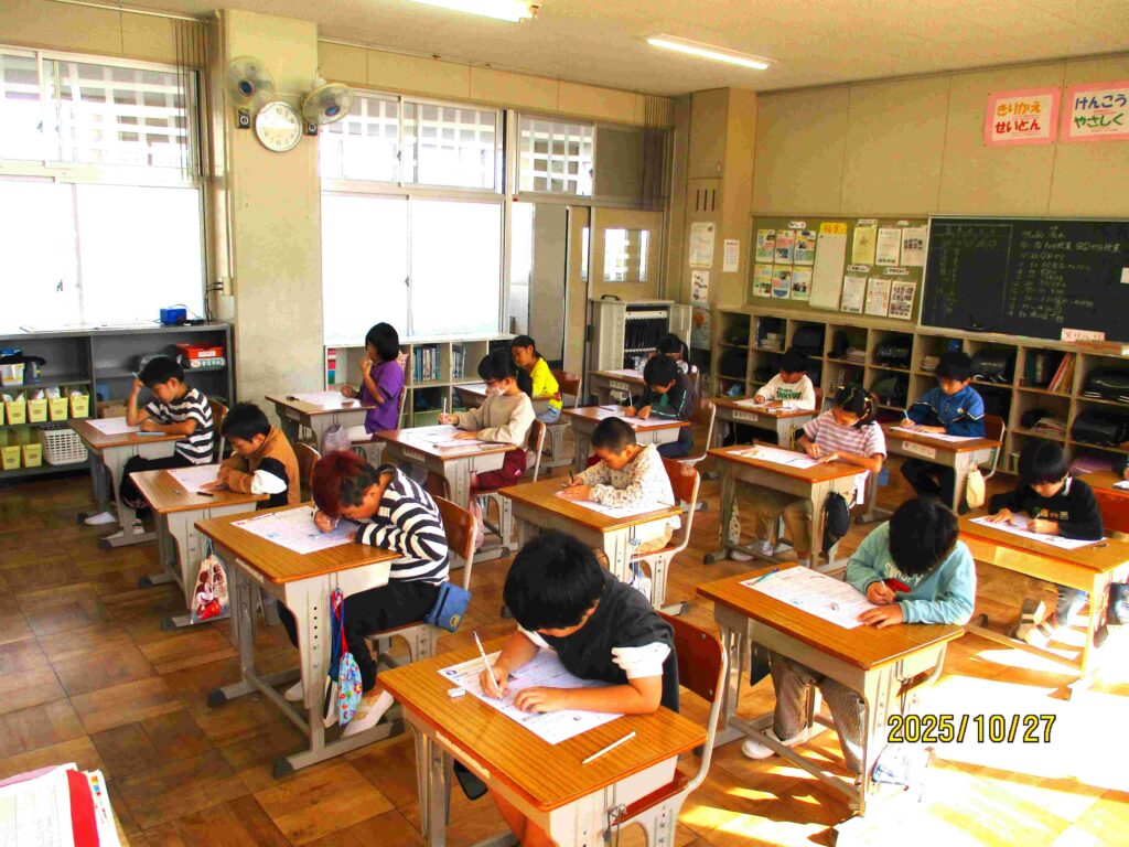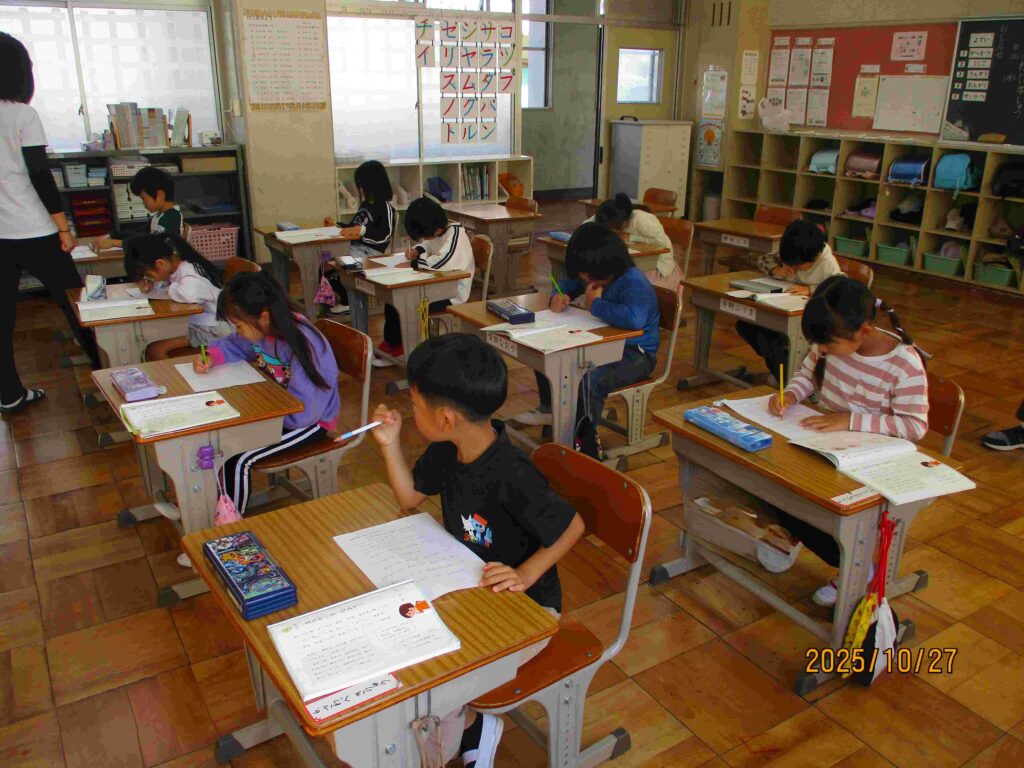 3年生国語「ちいちゃんのかげおくり」のテストをしていました。落ち着いて、文字を丁寧に書き、よく見直して仕上げていきました。