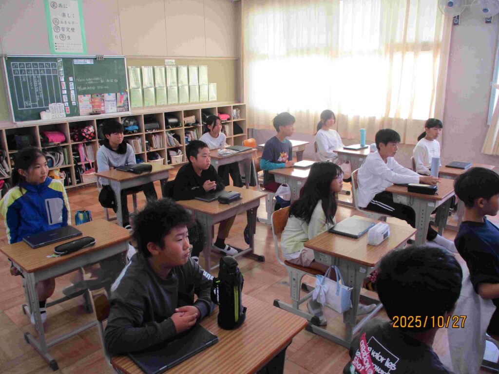 6年生学級活動で掃除場所の担当を決めていました。6年生は社会体育でも利用する体育館の掃除も担います。校内、校外の利用者を支えられるよう、担当場所をきれいに美しく保って行きましょう。