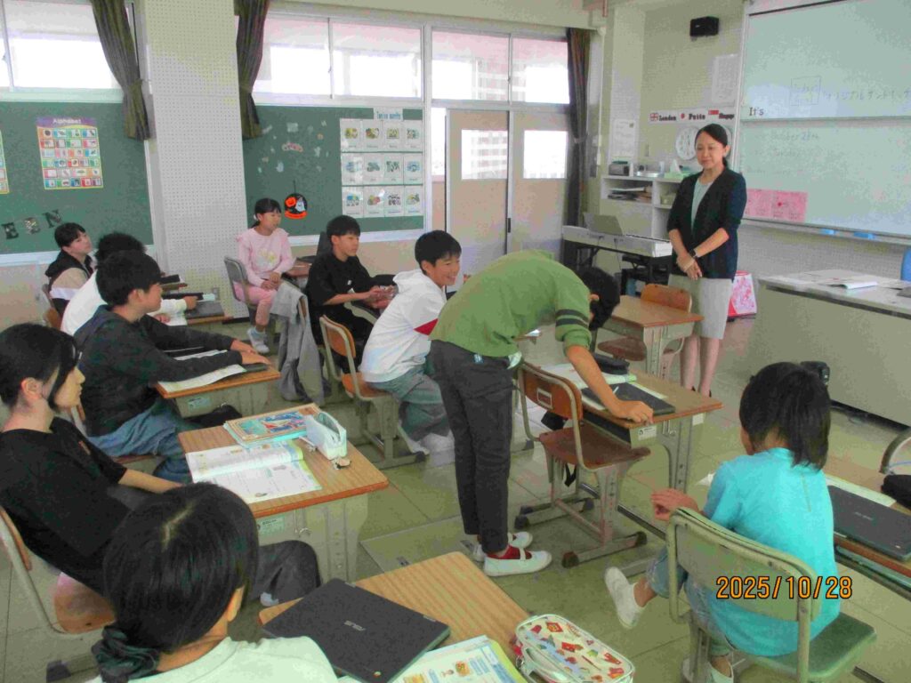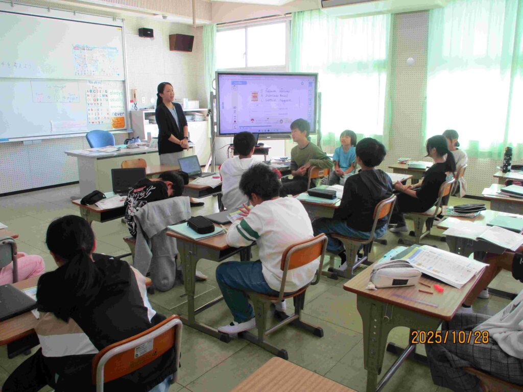 6年生外国語の授業「My sandwich is a 〇〇〇 sandwich」の学習です。〇〇〇には自身のお気に入りの具材が入ります。スペルの最初の頭文字を並べていくと…。どんなスペシャルサンドイッチができるのか楽しみです。