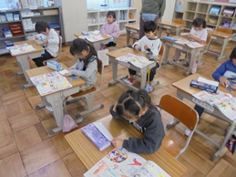 2年生は、先日行った町探検でお世話になった施設の方にお礼の手紙を書きました。先生の例文を基にお礼の手紙を書きます。例文をまね、そこに自分の思いを書き加えることで、子どもたちは少しずつ文章の書き方を学びんでいきます。感謝の気持ちを込めて書きました。