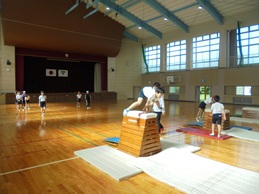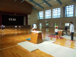 4年生は、体育「跳び箱」です。チャレンジしたい高さの跳び箱を選び、練習しました。子どもたちは手のつく場所、踏み切り方を友達と確認しながら何回もチャレンジしました。中には、台上前転を練習した子もいました。何事も前向きに取り組む姿勢が素晴らしいです。