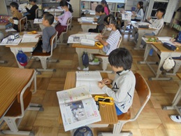 3年生は、理科「ひなたと ひかげ」です。日向と日陰の地面の温度差を調べたり、太陽の高さがどのように変わるかを調べました。感覚では分かっていますが、実際意識して調べると子どもたちは温度の違いや太陽高度の変化に改めて気付くことができました。