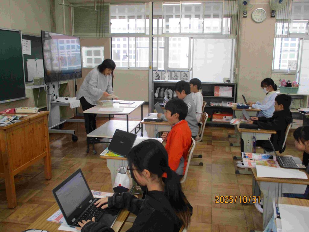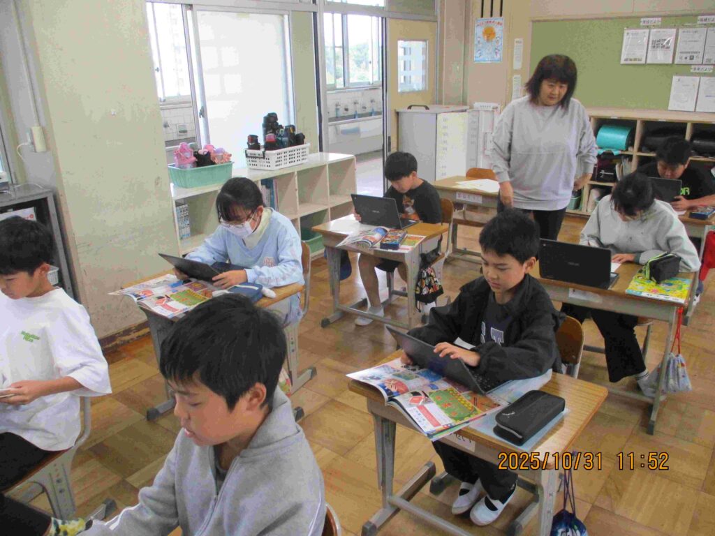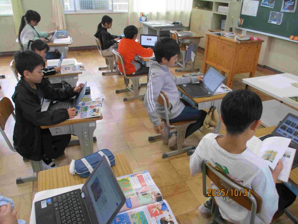 5年生図工「ほり進めて 刷り重ねて」の様子です。構図のアイデアを固めていきました。資料や画集等で自身の作品のイメージを創り上げていきました。