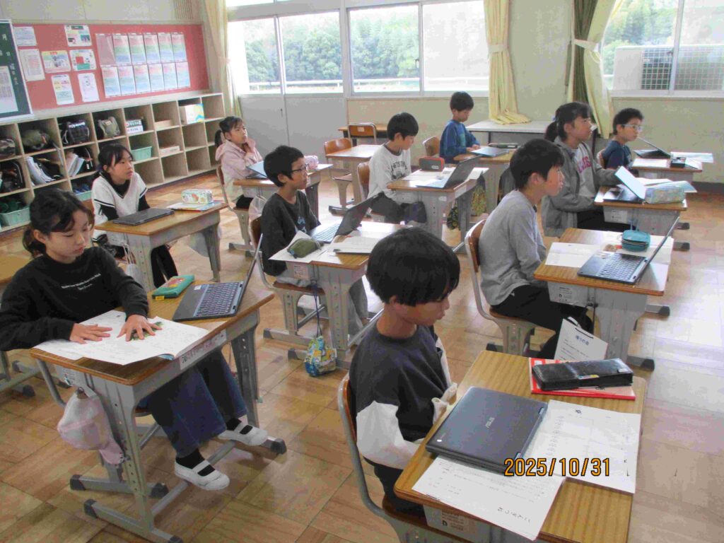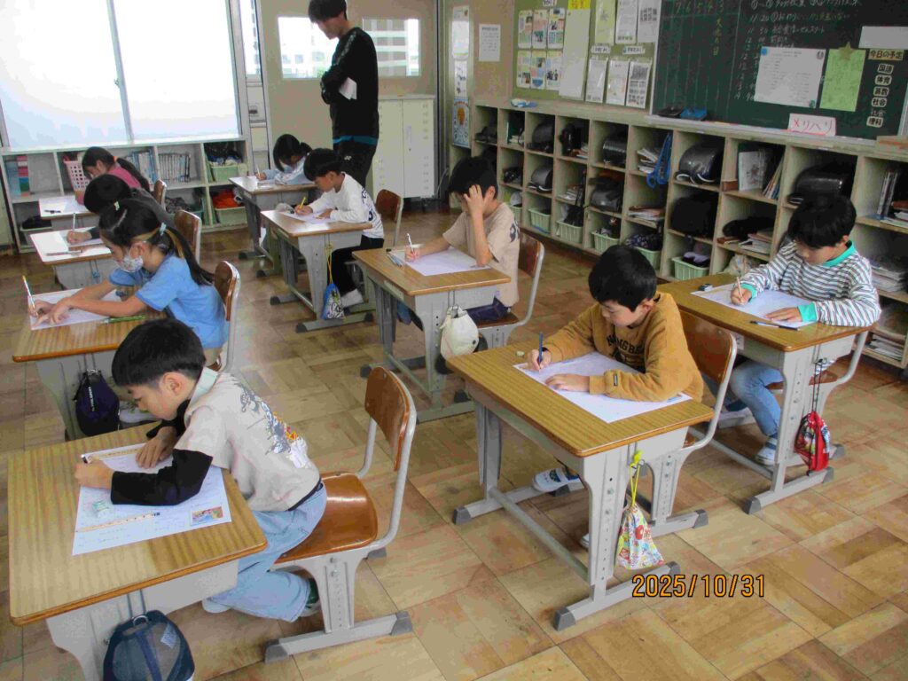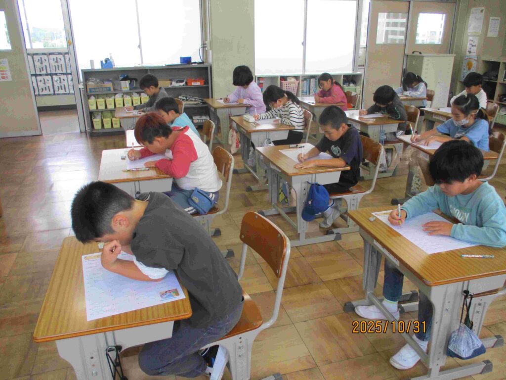 3年生国語、漢字テストの様子です。一各ずつていねいに書いていました。