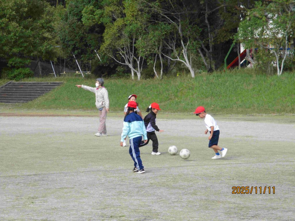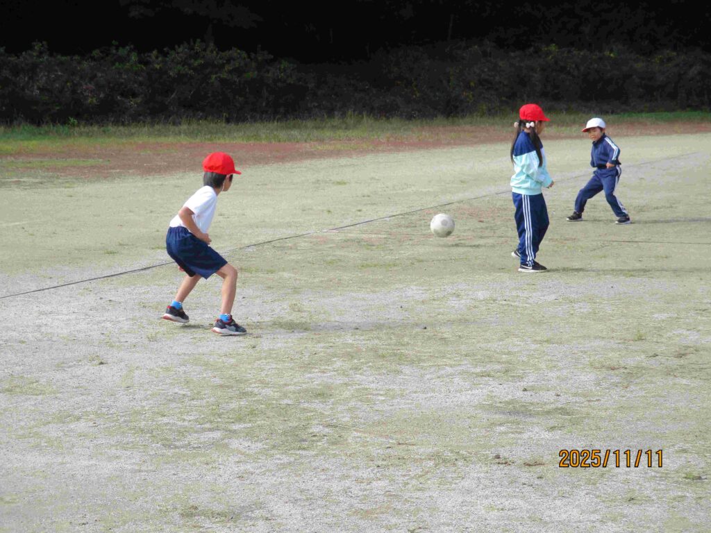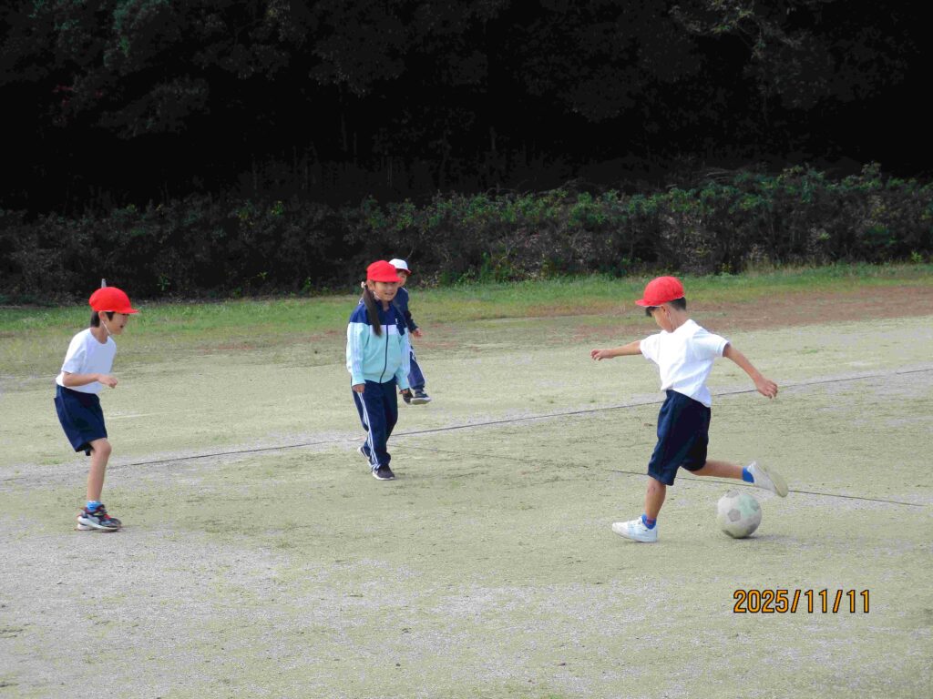 1年生体育「ボール運動(ミニサッカー)」で3on1をしました。ディフェンスにとられないよう味方へパスを出し、ボールをつなぎます。止める、蹴る動作も様になってきました。捕球する側もディフェンスのいないところへ走り込んでいました。