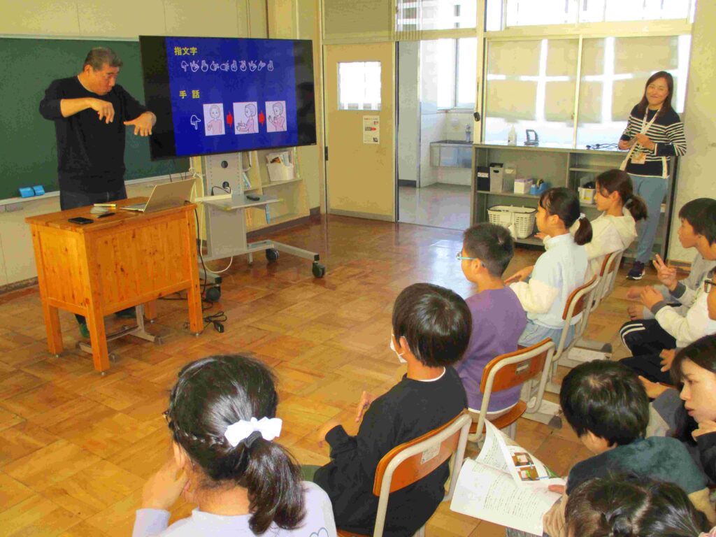 4年生が、町社会福祉協議会の皆様をお迎えして手話を体験しました。言葉や思いをつたえようと見て、考えて手話にチャレンジ。伝え方のやわらかさを求めて表情を加えたり、強調したい部分を大きく動かしたりと声で伝える以上に繊細な部分があることを学びました。講師の皆様、今日は本当にありがとうございました。