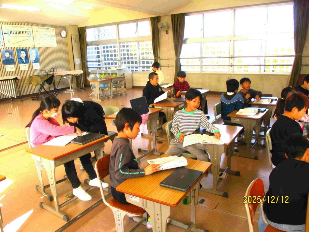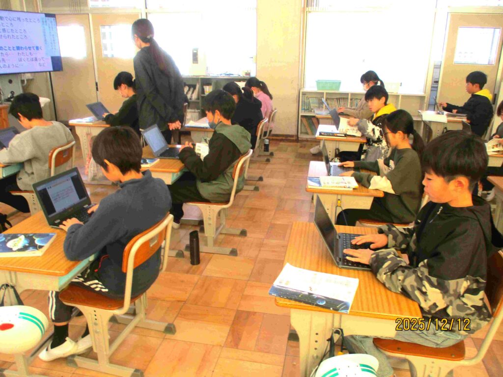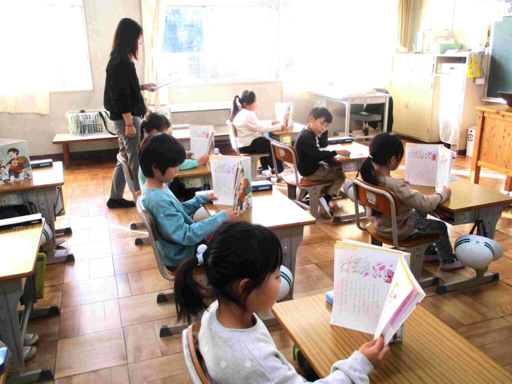 午前の授業の様子です。場面を想像する、物語りを創る、表現する等に取り組む学年が多かったです。