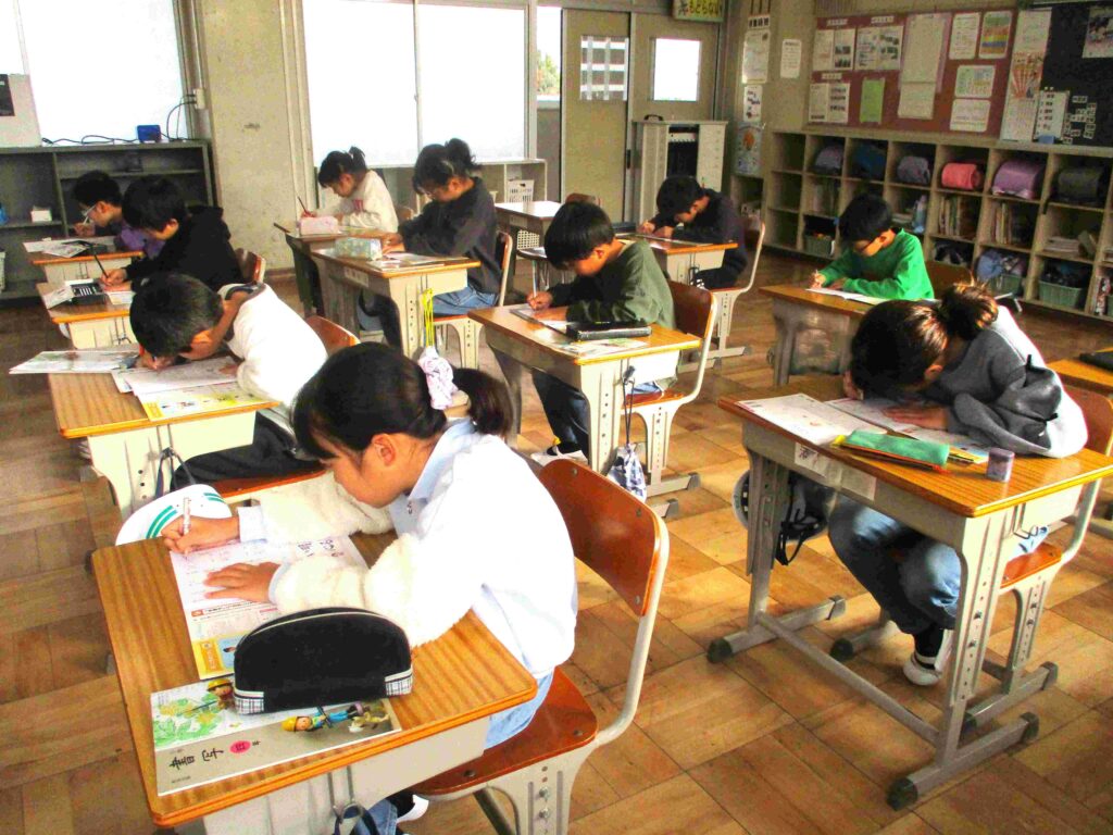 4年生は書写、硬筆の授業。お手本を見ながら丁寧に書いていました。集中、静けさ…、さすが4年生です。よい姿勢を保つ持続力もついてきました。正しく美しい字の基盤が姿勢にあるのですね。よくがんばりました。