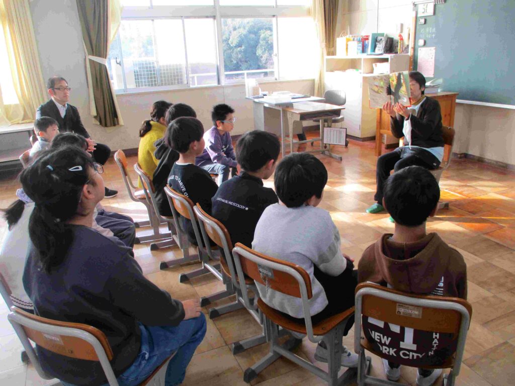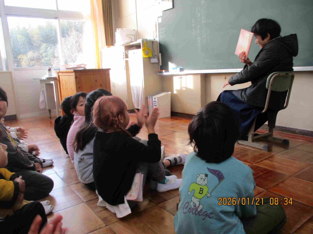 読み聞かせ会が開催されました。絵本が開かれた瞬間から子どもたちは身を乗り出し、話を聞き入っていました。ボランティアさんの語り口のおかげで寒い朝の教室の空気がふわっと暖かくなったように感じました。この時間は布土小には欠かせない時間です。最後はみんなでしっかりとお礼をしました。読み聞かせボランティアの皆さん、すてきな時間をありがとうございました。